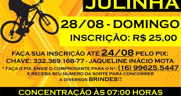 Para se inscrever, a pessoa deve fazer um Pix identificado como Pedal Solidário Julinha, no valor de R$25 direto para Julinha e encaminhar o comprovante para o WhatsApp. Em seguida, será gerado um número com nome e contato da pessoa, para concorrer a vários brindes no final do percurso.