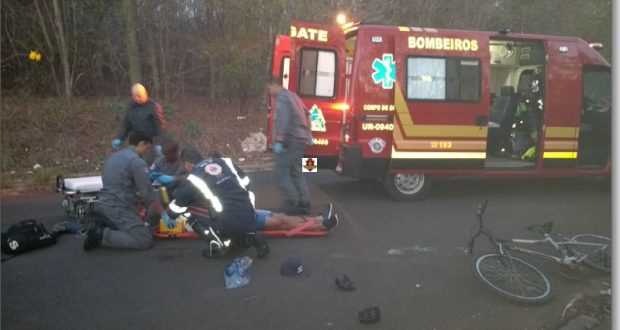 Ciclista sofre vários ferimentos e é socorrido pelo Corpo de Bombeiros