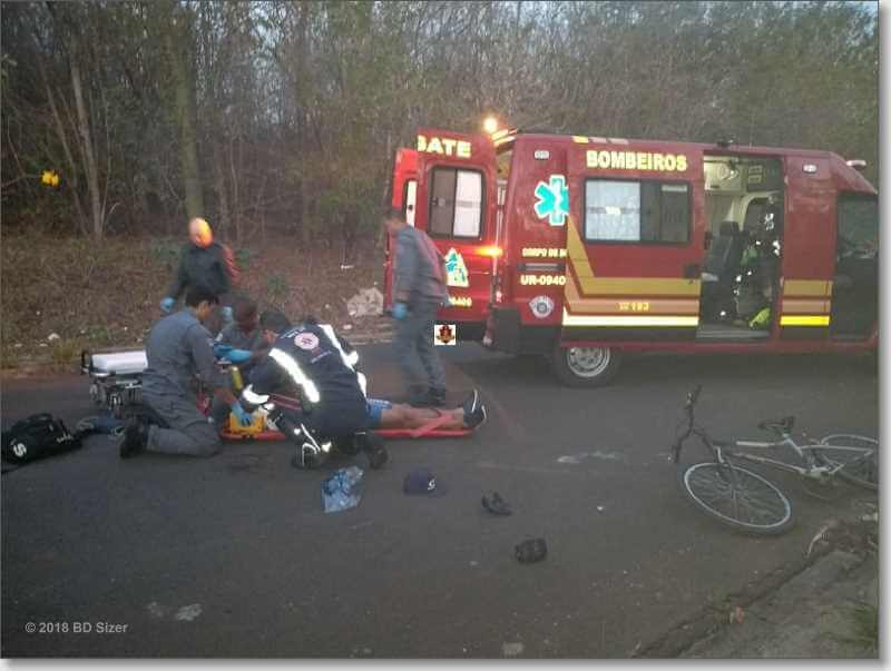 Um ciclista ficou  ferido  nesta tarde de terça-feira, 21 de agosto de 2018, rua Professor José Mario Pinote, na região do Prolongamento Jd. Medeiros, São Carlos-SP.