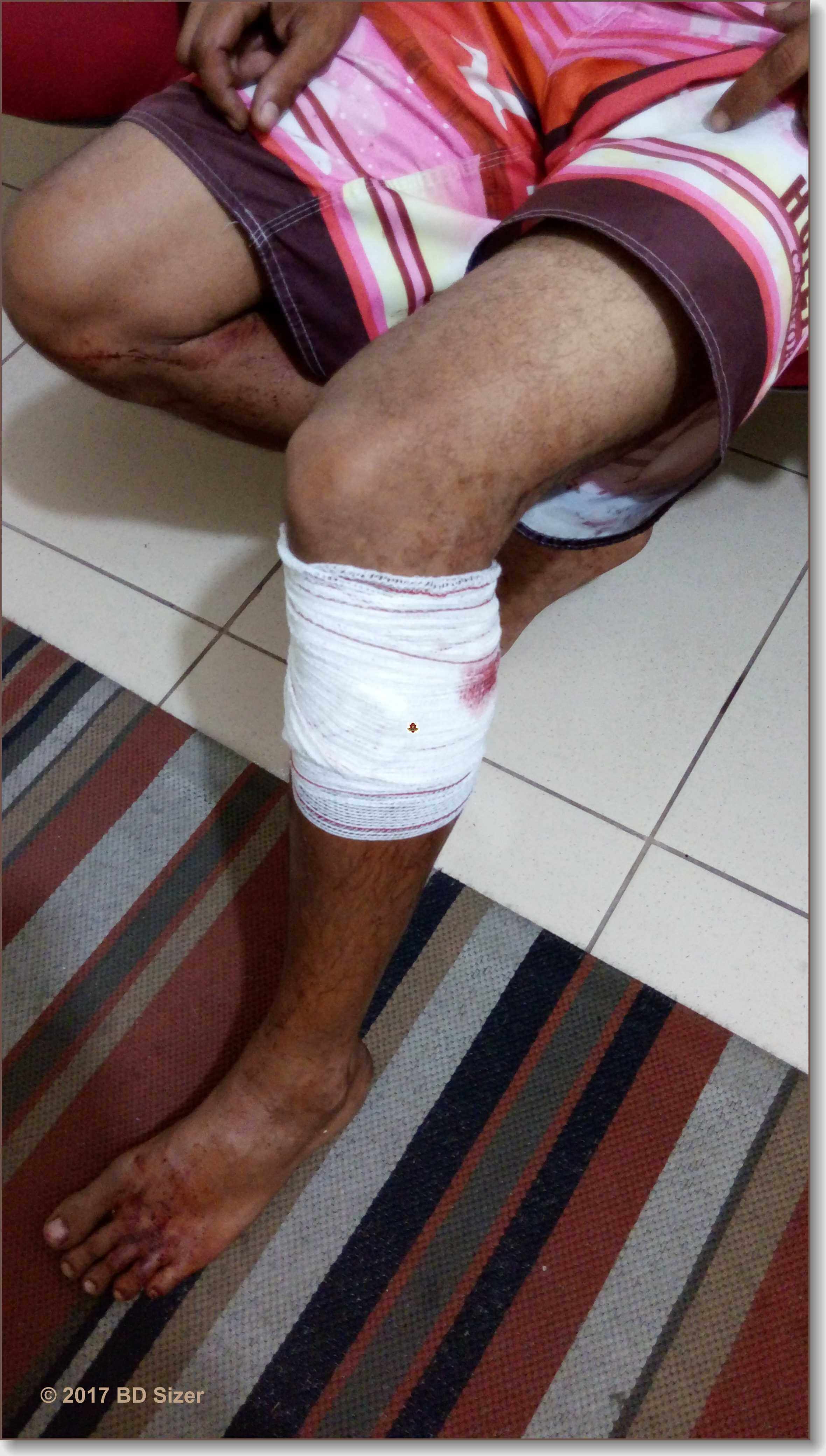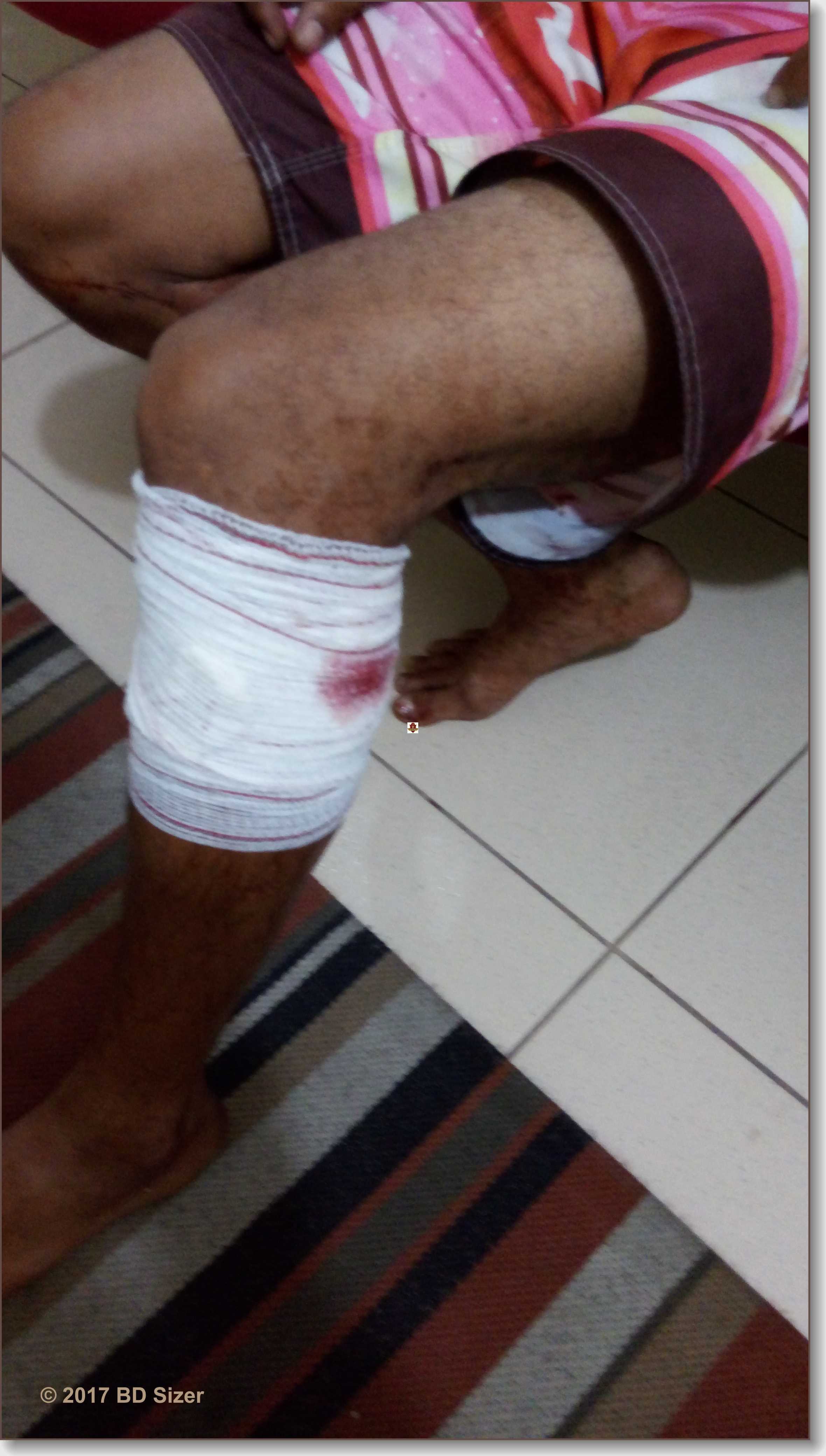 A nossa equipe de reportagem conversou com as vítimas, identificadas como Ubelten R.dos Santos Junior, de 23 anos e Cristiano. G. Santos, de 30 . Segundo os mesmos, eles estavam sentados em uma praça tomando cerveja, quando um sujeito em uma moto se aproximou, sacou da arma de fogo e efetuou vários tiros contra os mesmos. O primeiro disparo atingiu a panturrilha de Cristiano. Os dois homens saíram em desabalada carreira e o indivíduo ainda descarregou a arma. O atirador fugiu de moto e duas viaturas da PM que chegaram minutos depois no local acionaram o SAMU que socorreu o baleado e o encaminhou à Santa Casa, onde foi medicado e liberado. A PM foi informada que o autor dos disparos é o atual companheiro da ex-mulher de Ubelten. Foram feitas diligencia, mas ele não foi encontrado. Ubelten conversou com o CVP e segundo o mesmo, ele tem um filho de 4 anos com sua ex- companheira e alguns dias atrás o atual dela e suposto atirador estava andando com a criança de moto sem capacete. O pai não gostou e foi conversar com este, que não aceitou hoje foi cobrar a bronca. Acredita-se que ele queria matar o ex da sua esposa, mas acabou atingindo o Cristiano que não tinha nada a ver com a situação.