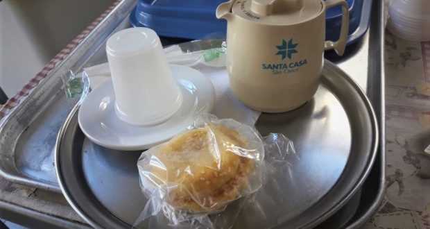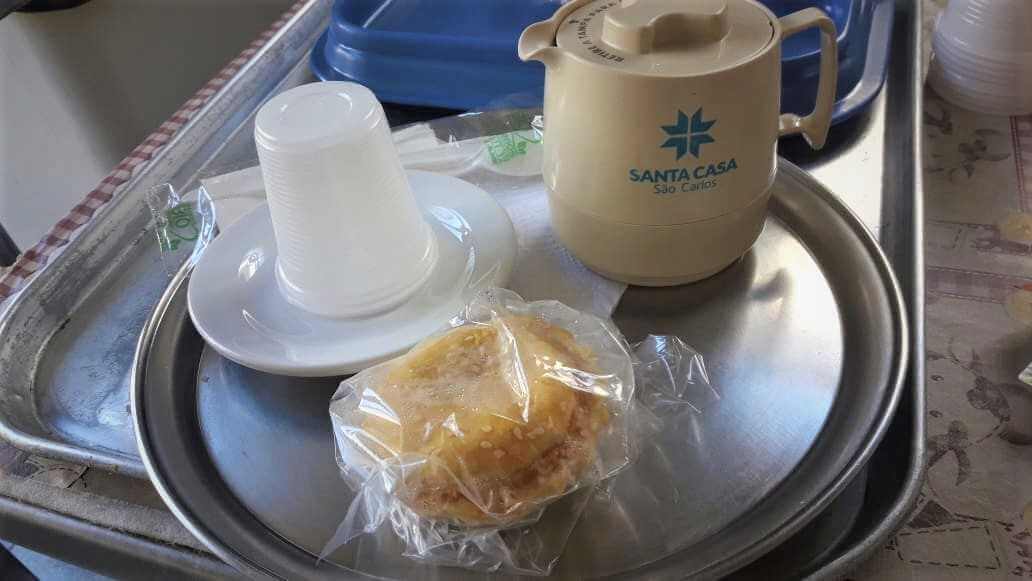 Café da tarde servido aos pacientes SUS da Santa Casa com doações feitas ao hospital .