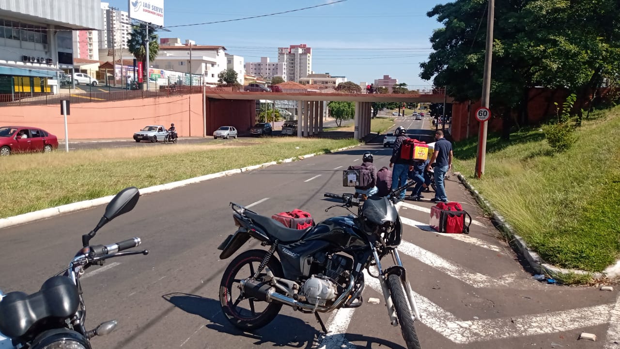 Um motociclista de 29 anos ficou ferido nesta manhã de quinta-feira, 29 de abril de 2021, ao se envolver em um acidente de trânsito na Avenida Trabalhador São-carlense, quase esquina coma Rua Dona Alexandrina, São Carlos-SP.