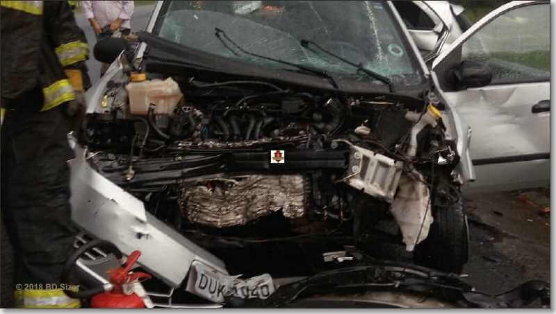 A colisão ocorreu por volta das 16:30. O SAMU e Corpo de Bombeiros foram acionados para o local e socorreram as vítimas, as quais ficaram retidas nas ferragens dos carros.