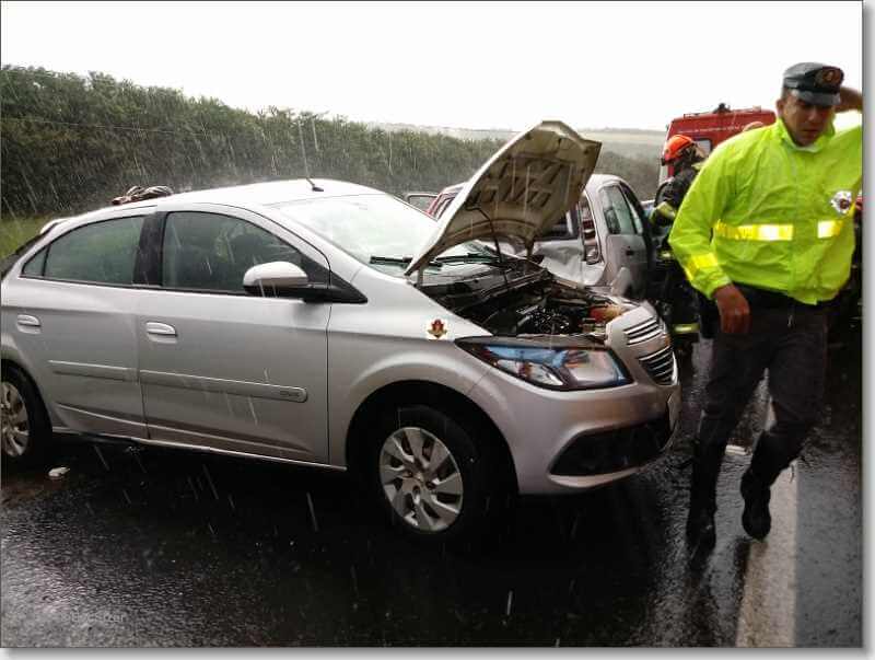 Segundo a Polícia Militar Rodoviária, Vanda. L.Pazian, de 54 anos, conduzia o Ford Fiesta no sentido Ribeirão Preto/São Carlos, rodopiou na pista molhada e colidiu na lateral do Onix também da cor prata, placas de Ribeirão Preto, conduzido por Carolina .G. de Freitas, de 32 anos. Ambas foram socorridas e encaminhadas à Santa Casa onde permaneceram internadas em observação.