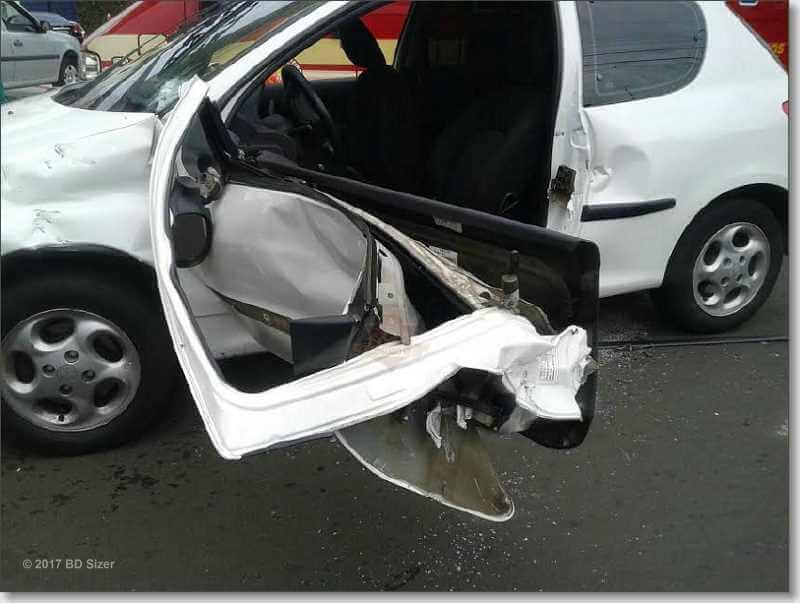 Início » Destaque » Colisão destrói porta de carro e deixa dois feridos