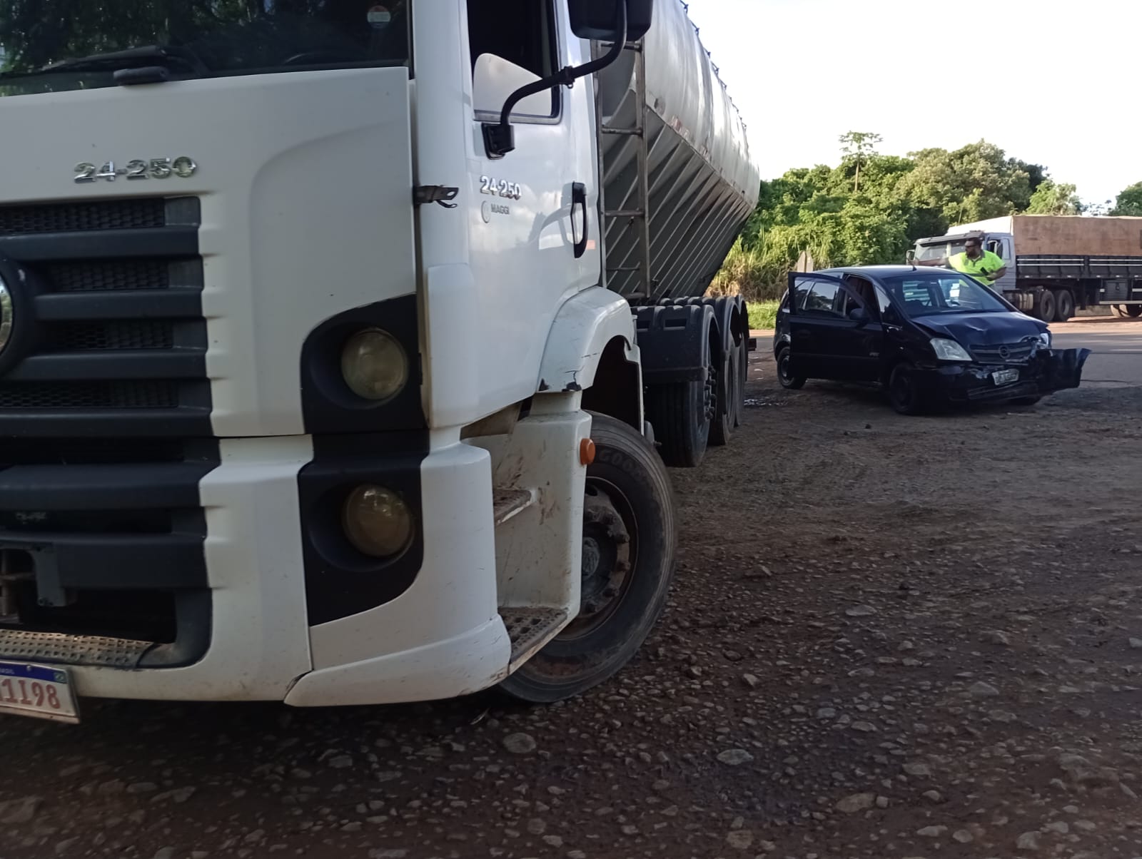 De acordo com informações,  um casal ocupando um veículo  Meriva da cor preta, transitava no sentido Ribeirão Bonito/ São Carlos, um caminhão,  que transitava no sentido contrário,  foi adentrar em uma fazenda, ao tentar cruzar a  rodovia acabou sendo atingido pelo carro.  A passageira do carro sofreu lesão no rosto. O SAMU e o Corpo de Bombeiros foram acionados e a vítima foi encaminhada para a Santa Casa. Equipes da Polícia Militar  Rodoviária estiveram no local e tomaram as medidas disas cabíveis.