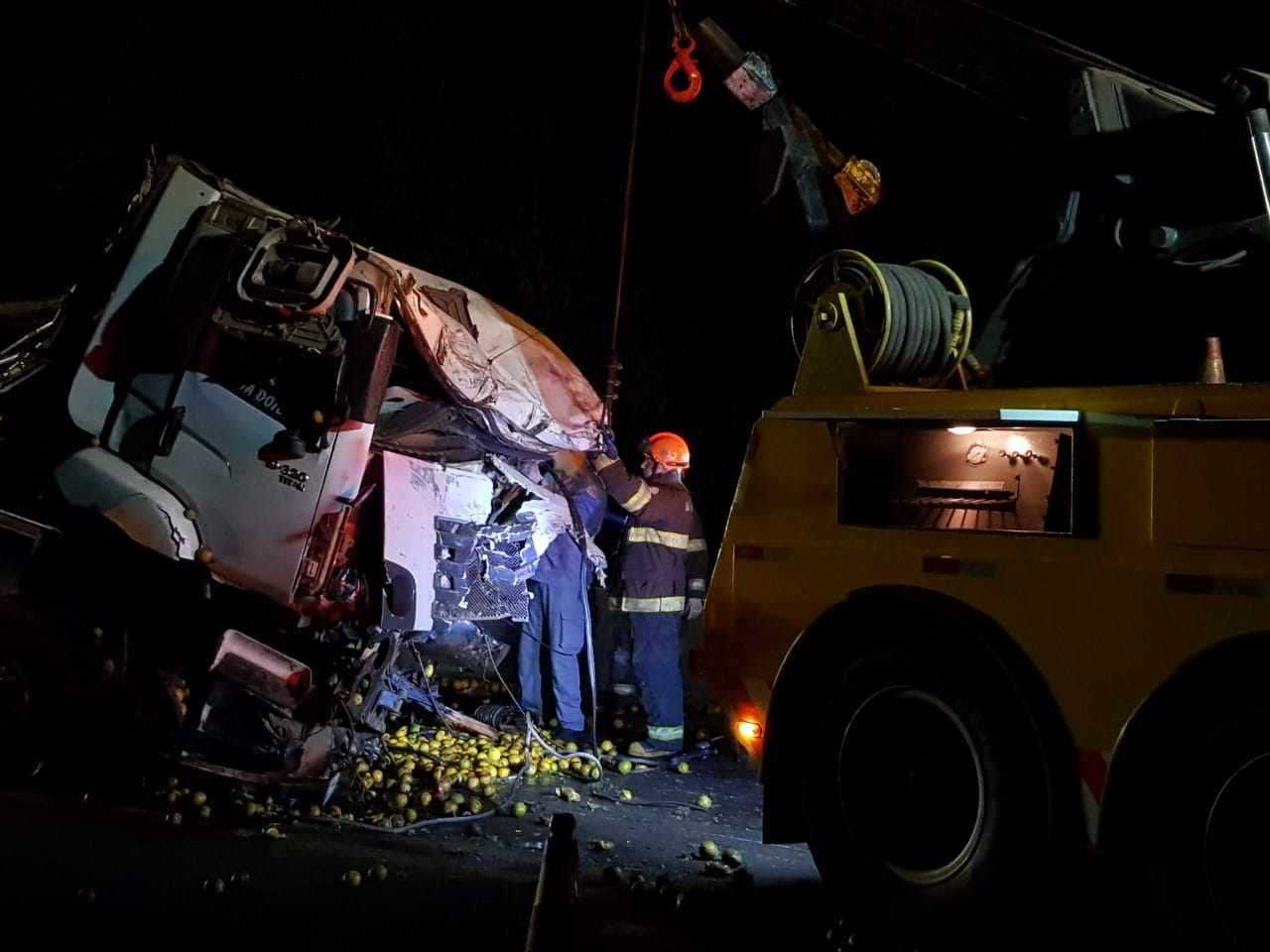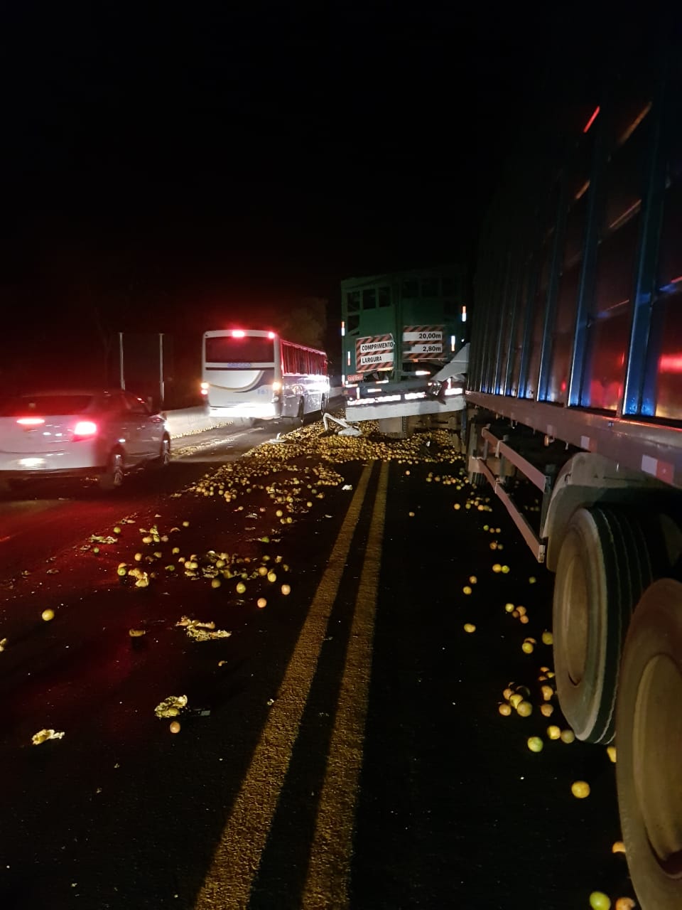 O veículo caminhão VW da cor branca, carregado com laranjas, conduzido por Douglas, o qual seguia sentido Jau/Araraquara, por razoes desconhecidas não teria respeitado a sinalização temporária , vindo a tomar a faixa de rolamento permitida aos veículos que transitavam sentido Araraquara/Jau, seguindo na contramão de direção, vindo a colidir de frente com a Scania L 110, da cor laranja, a qual estava sem carga e era conduzida pela vítima fatal Januário e logo atrás deste, seguia o veículo Volvo FH da cor branca, o qual estava carregado com bagaço de cana, conduzido por Lucas, que nada sofreu, apenas sentiu dores nos joelhos. Lucas relatou que repentinamente o veículo da cor branca veio em direção ao veículo cegonha, que transitava a sua frente e ocorreu a colisão. Lucas tentou frear seu veículo, mas colidiu na traseira do veículo do tipo cegonha. No local também esteve a Polícia Rodoviária. Os motoristas ficaram presos nas ferragens. Após horas de trabalho do órgãos competentes, os corpos foram encaminhados ao IML.