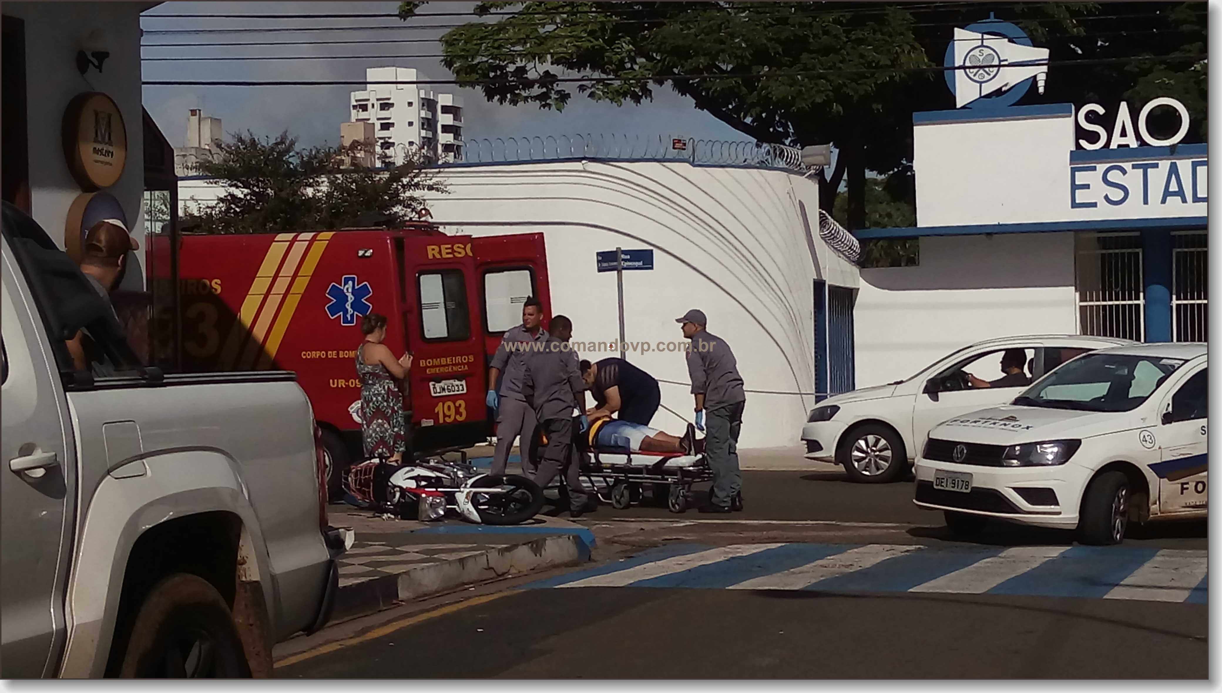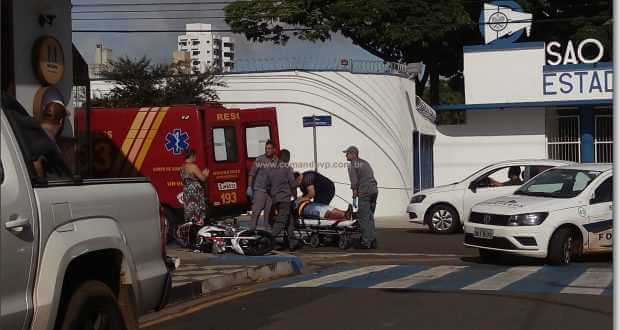 Um jovem motociclista ficou ferido em um acidente nesta manhã de terça-feira, 19 de março de 2019, no cruzamento da rua Episcopal, com a rua Orlando Damiano, região central de São Carlos-SP.