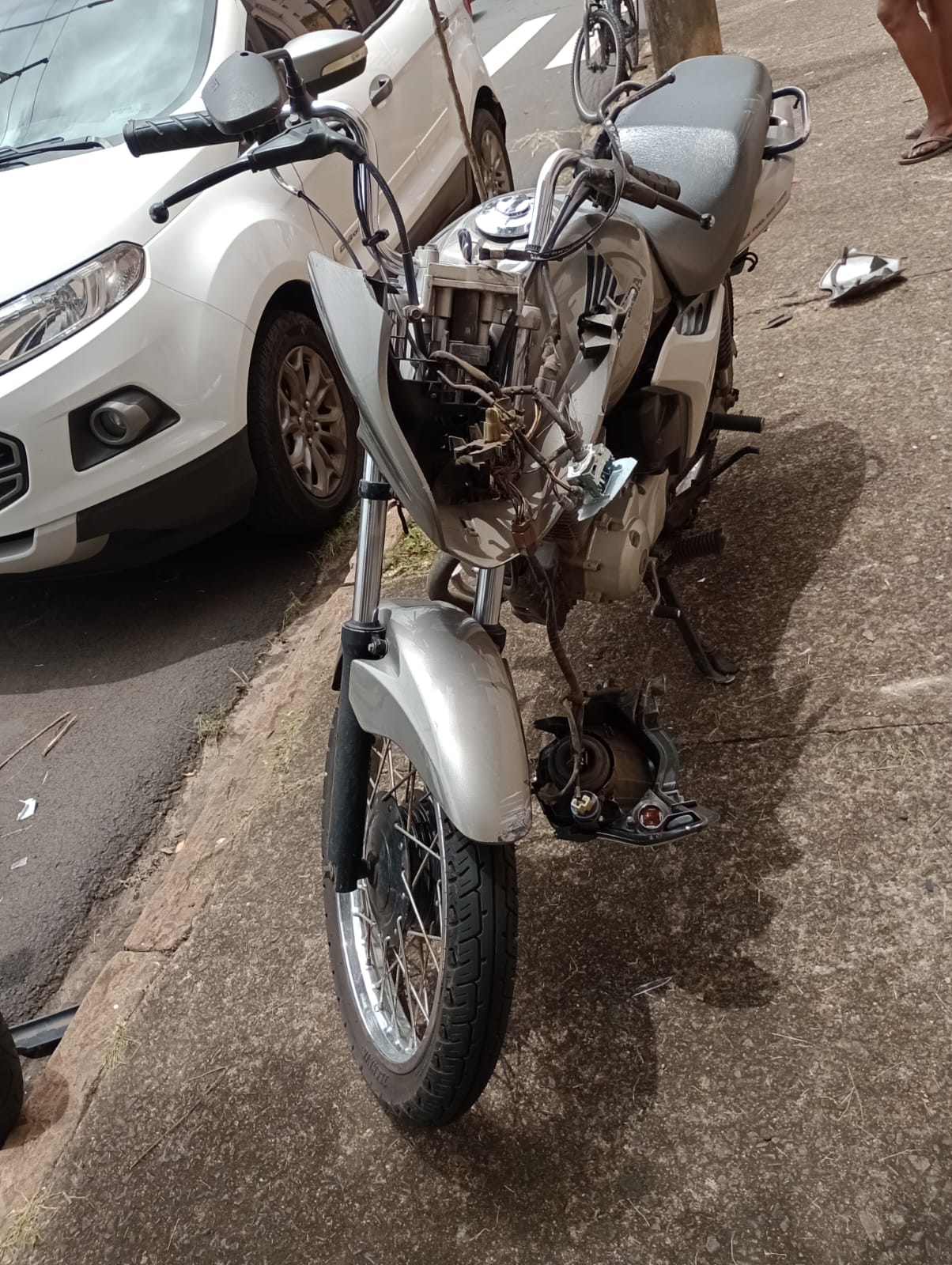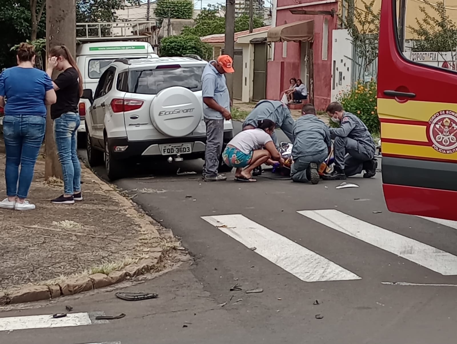 Segundo informações, uma mulher de 57 anos transitava com um veículo Creta da cor branca, pela Rua Maria Isabel de Oliveira Botelho,  no sentido, da Vila São José, para Vila Nery e a moto estava transitando pela Rua Padre Teixeira, preferencial para o motociclista, um  caminhão, que estaria estacionado em local proibido,  teria atrapalhado a visão da condutora do carro e a colisão foi inevitável. Desgovernada, a moto atingiu a traseira de um veículo Eco Sport, que estava devidamente estacionado. O motociclista sofreu lesões graves no  olho, perna e clavícula e foi socorrido pelo Corpo de Bombeiros e encaminhado para a Santa Casa. A PM esteve no local e tomou as medidas cabíveis.