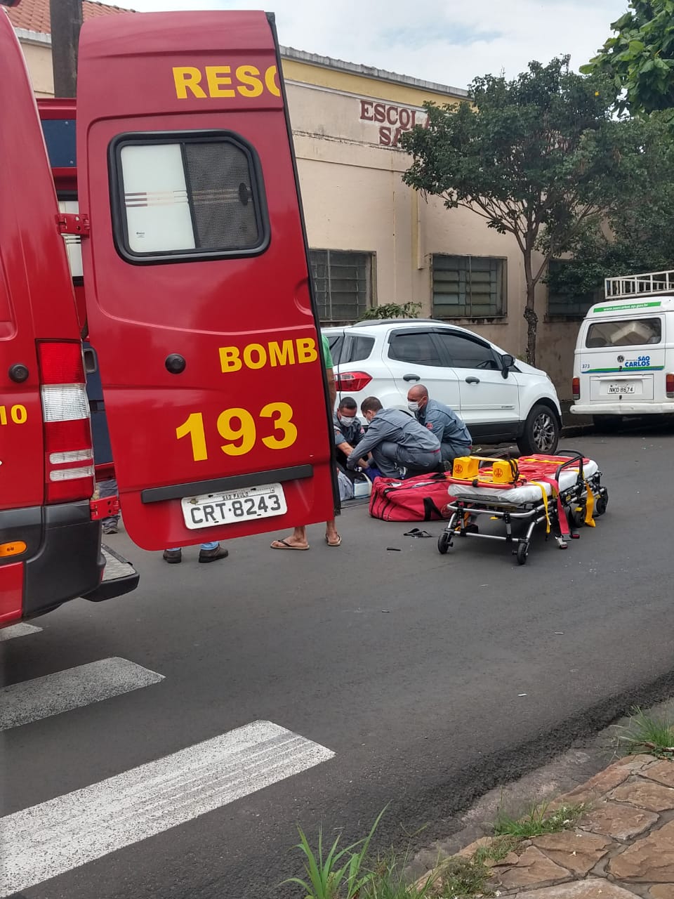 Um motociclista nome e idade ainda não revelados,  sofreu lesões graves em um acidente de trânsito ocorrido nesta quinta-feira, 2 de fevereiro de 2023, na Rua Maria Isabel de Oliveira Botelho, cruzamento com a Rua Padre Teixeira, bairro Vila Nery, São Carlos-SP.