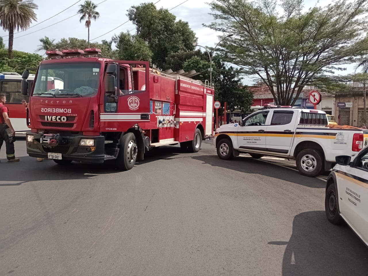 Uma colisão entre uma moto e um ônibus coletivo ocorrida nesta manhã de terça-feira, 28 de março de 2023, na Praça Antônio Prado, em São Carlos-SP, deixou um homem de 35 anos levemente ferido.