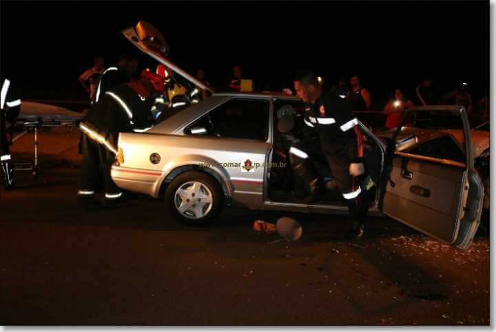 Três pessoas ficaram feridas, sendo uma com gravidade em uma colisão frontal entre dois carros nesta noite de sábado, 29 de fevereiro de 2020, na Avenida. Av. Dr. Heitor José Reali, em São Carlos-SP.