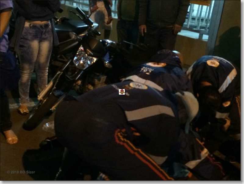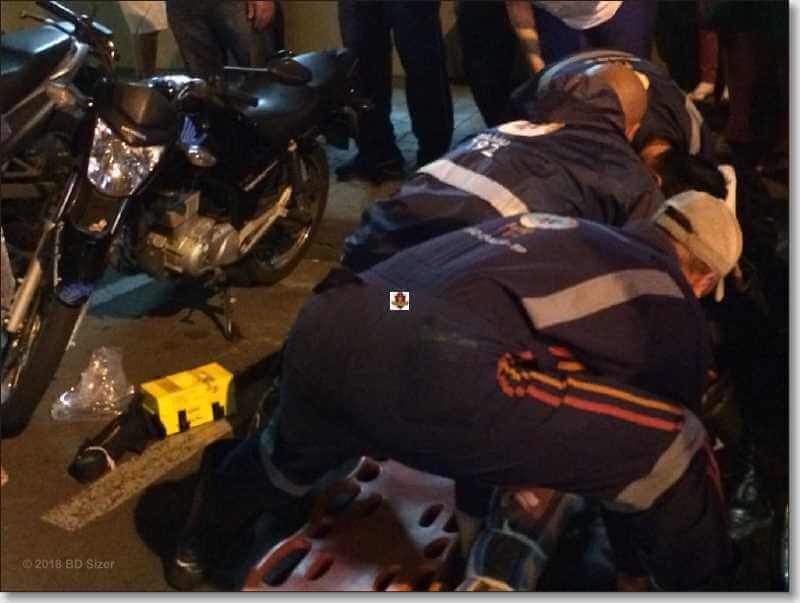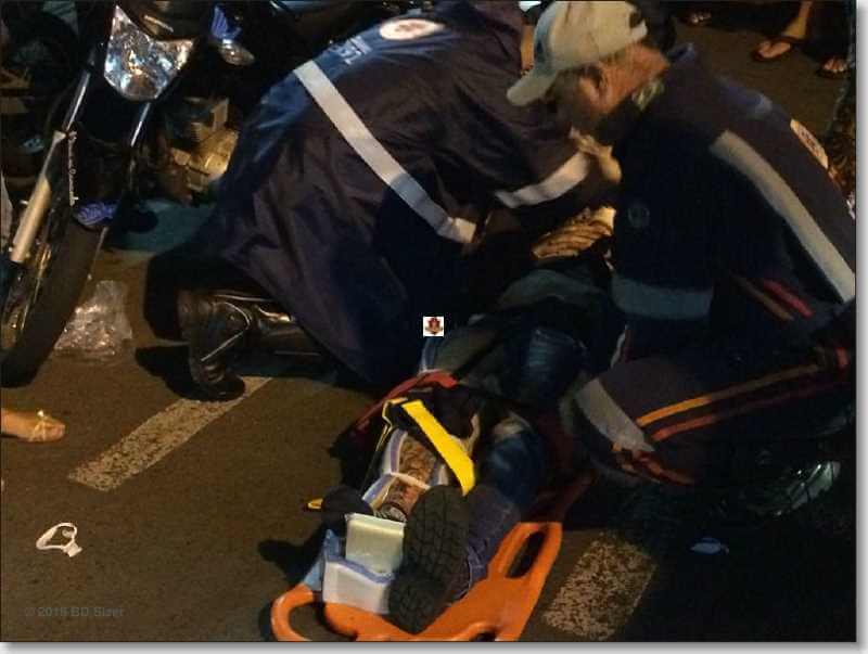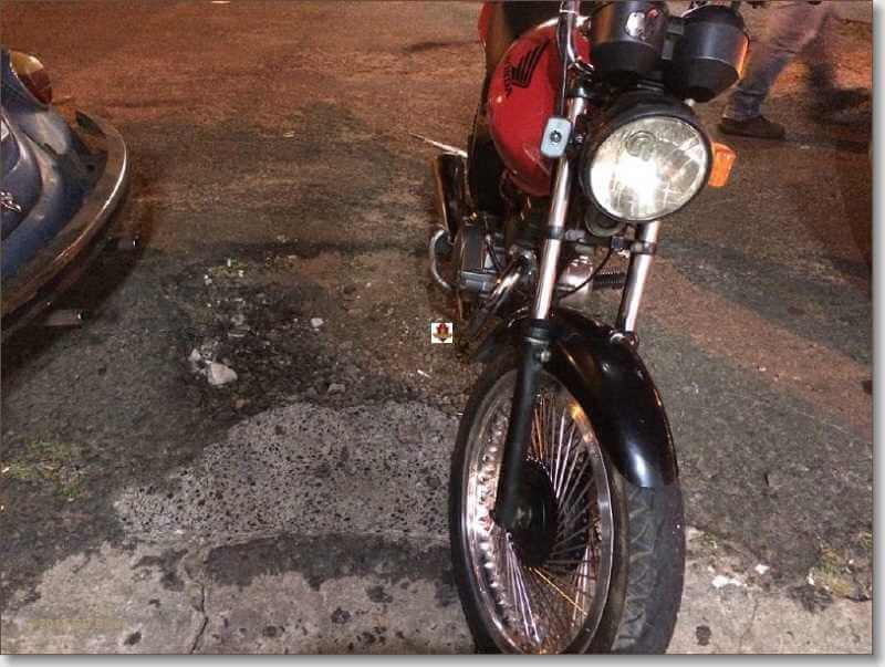 Segundo informações, a moto vermelha, placa de Carlos, transitava pela rua Raimundo Correa, no sentido do centro/ bairro e o veículo Space Fox, foi fazer a conversão para adentrar na rua João Villari e acabou acontecendo o acidente. Breno, 19 anos, foi ao solo e sofreu um ferimento na perna direita (possível fratura). O SAMU foi acionado e encaminhou o jovem à Santa Casa. A PM esteve presente e tomou as medidas cabíveis.