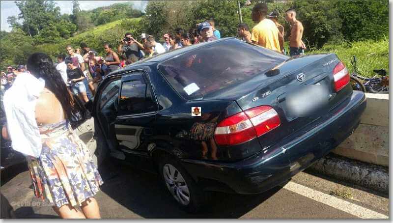 Uma colisão entre dois carros deixou uma pessoa presa nas ferragens e em estado grave nesta tarde de segunda-feira, 23-04-2018, na Serra do bairro Cidade Aracy, São Carlos-SP.