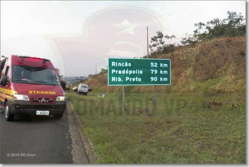 O SAMU foi para o local e socorreu Vitório Marcolino, que segundo a Polícia Rodoviária, conduzia a Fiorino de Ribeirão Preto, o passageiro Fabrício Rodrigues, e Luis Carlos, condutor caminhonete, os quais foram encaminhadas à Santa Casa, onde permaneceram internados em observação.