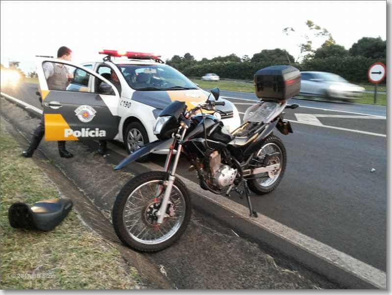 Um motociclista identificado como José Carlos, de 44 anos, ficou ferido no início da noite desta terça-feira, 18-04-2017, ao sofrer um acidente de trânsito na rodovia Washington Luís, São Carlos-SP.