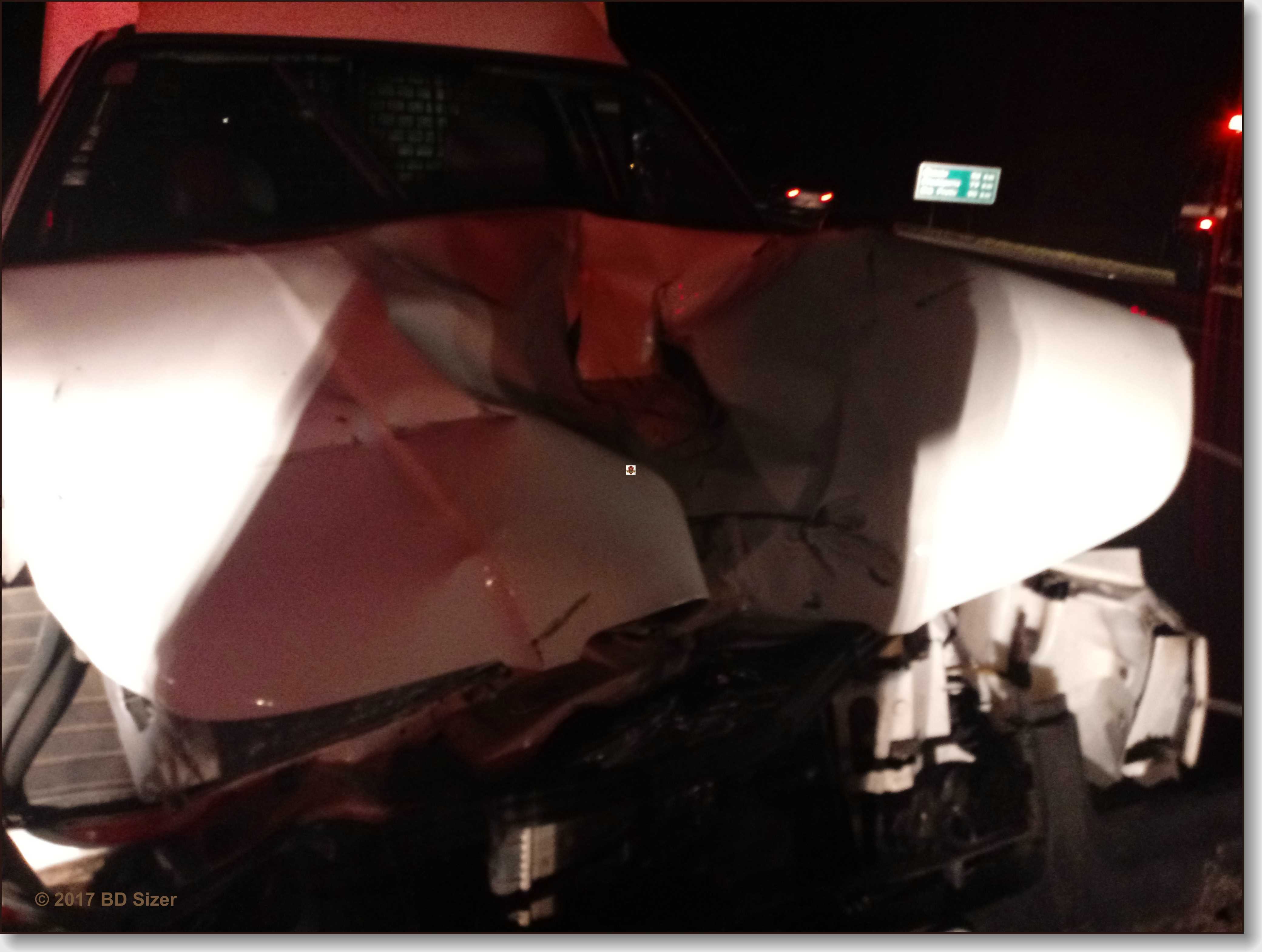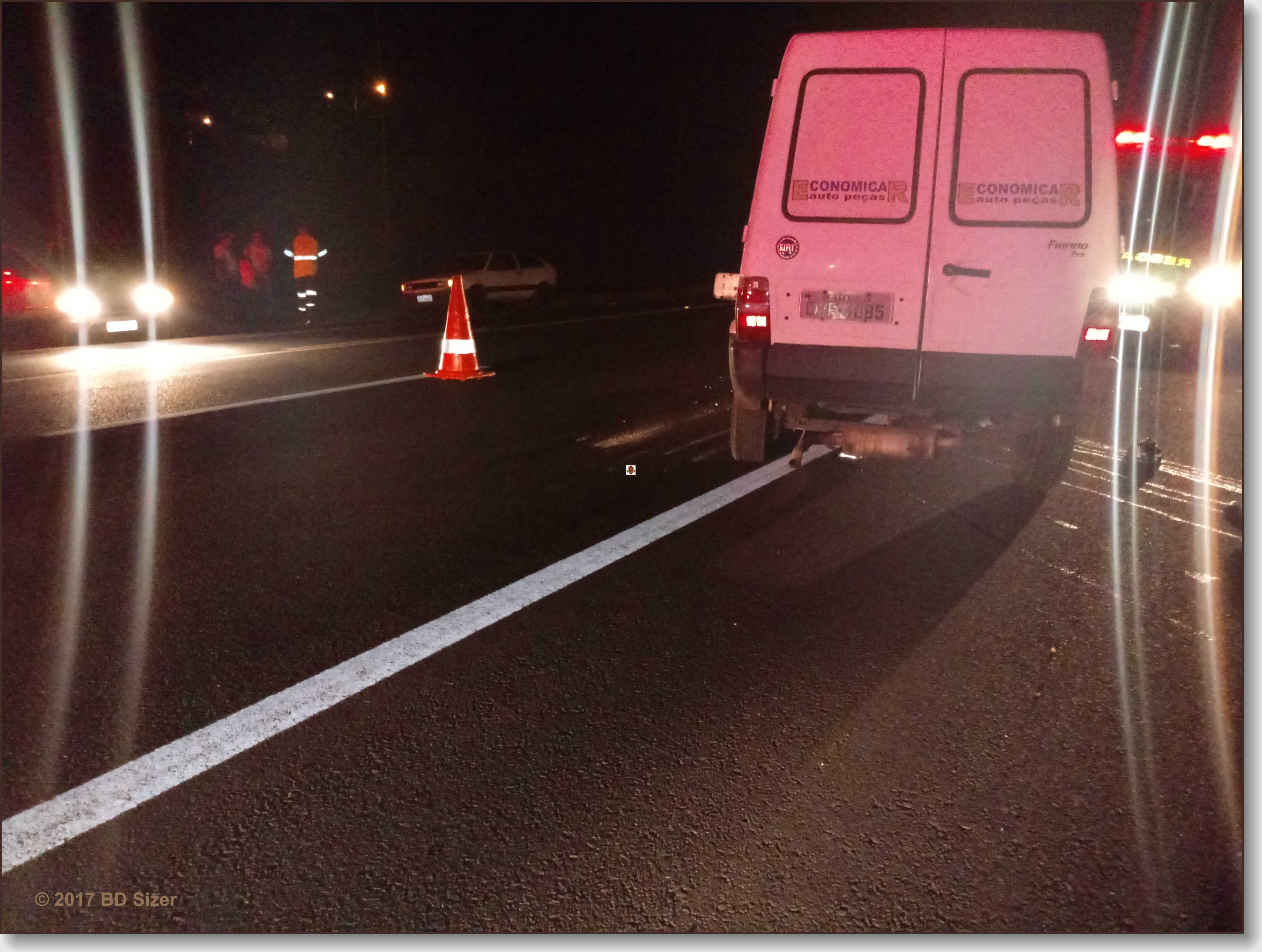 O acidente aconteceu por volta das 21:40 no sentido Varjão/São Carlos. O SAMU e o Corpo de Bombeiros foram para o local e o ferido, o qual não teve o nome revelado foi encaminhado à Santa Casa, aparentemente com ferimentos leves. As causas do acidente são desconhecidas. O motorista da Scania nada sofre.