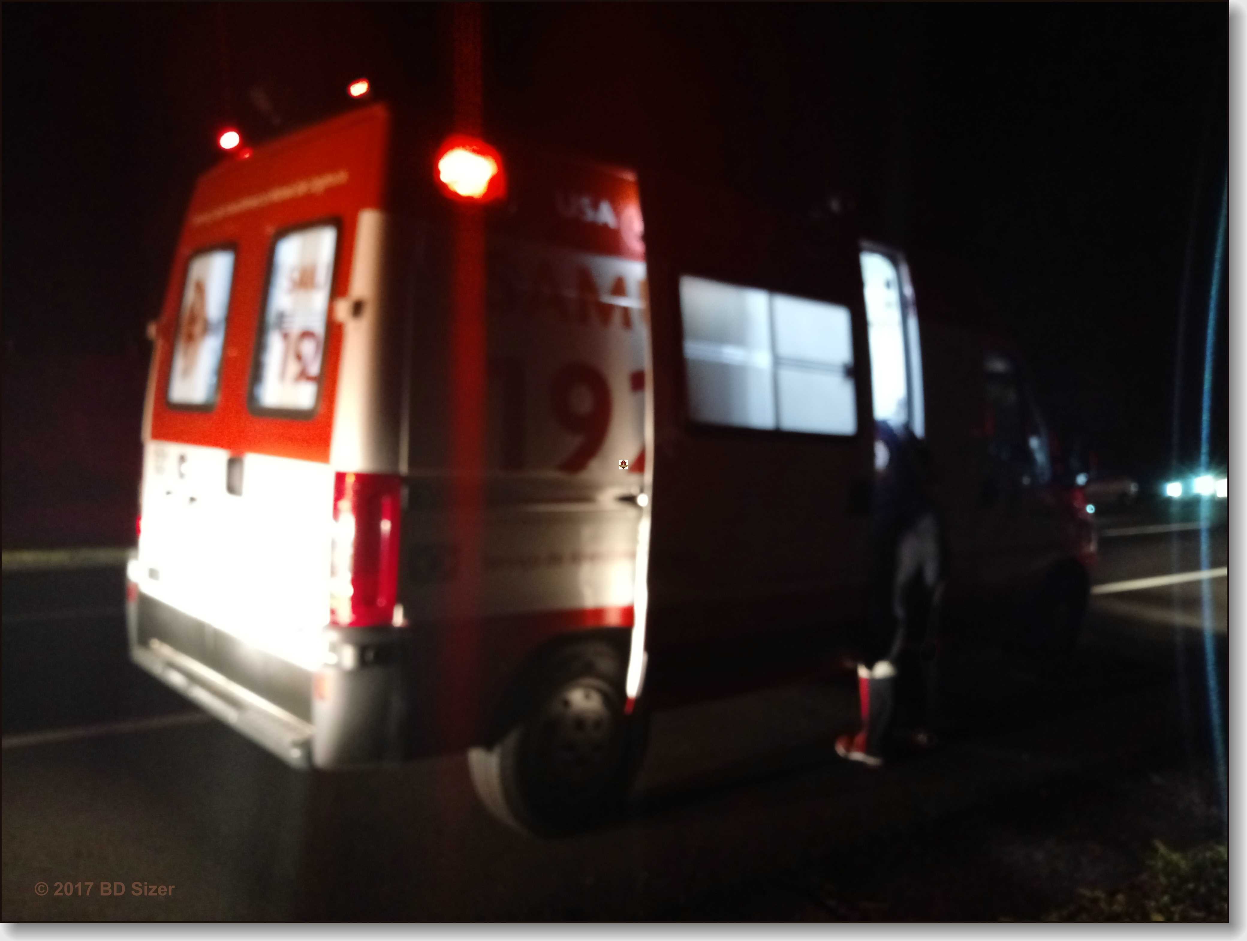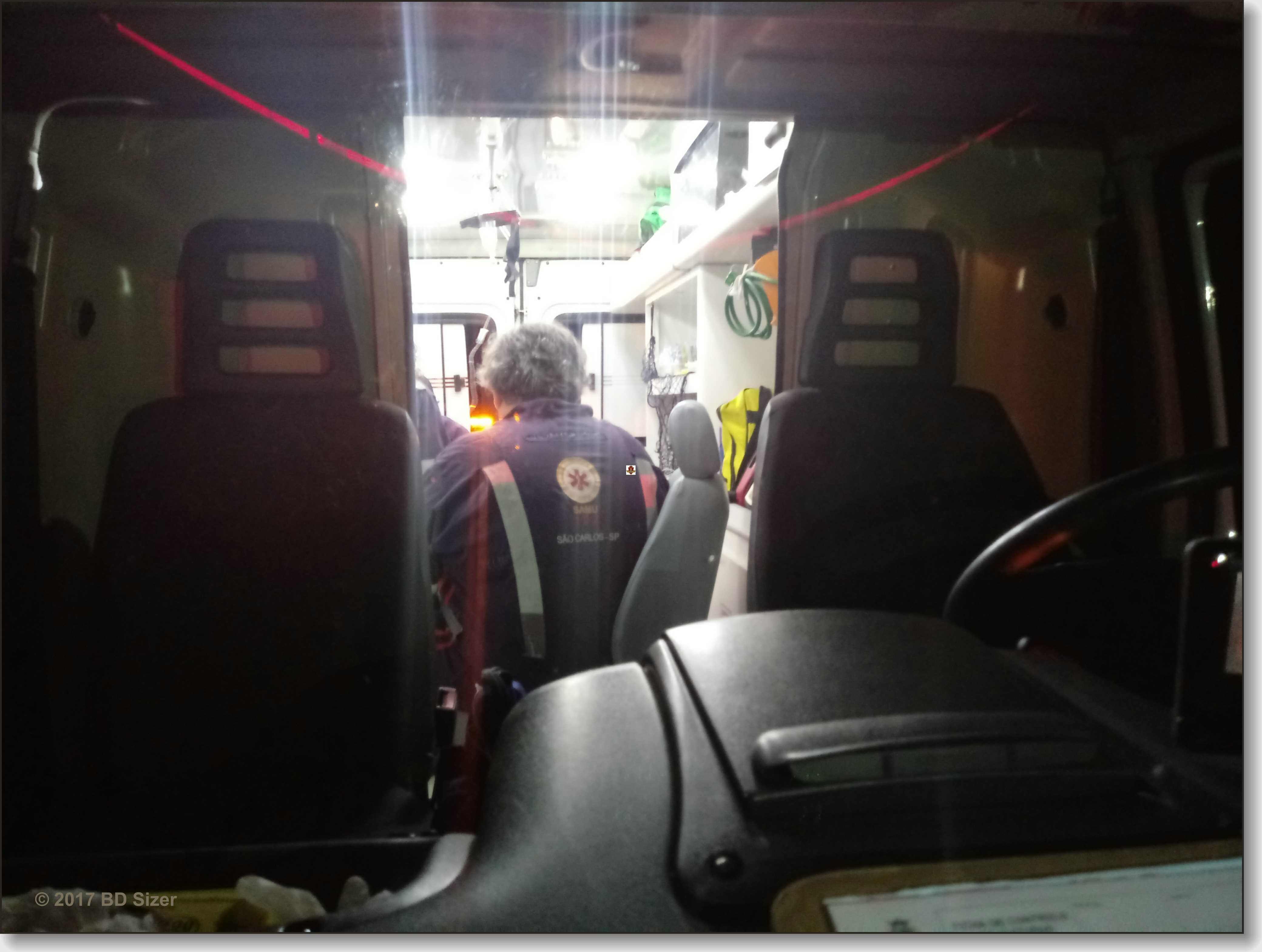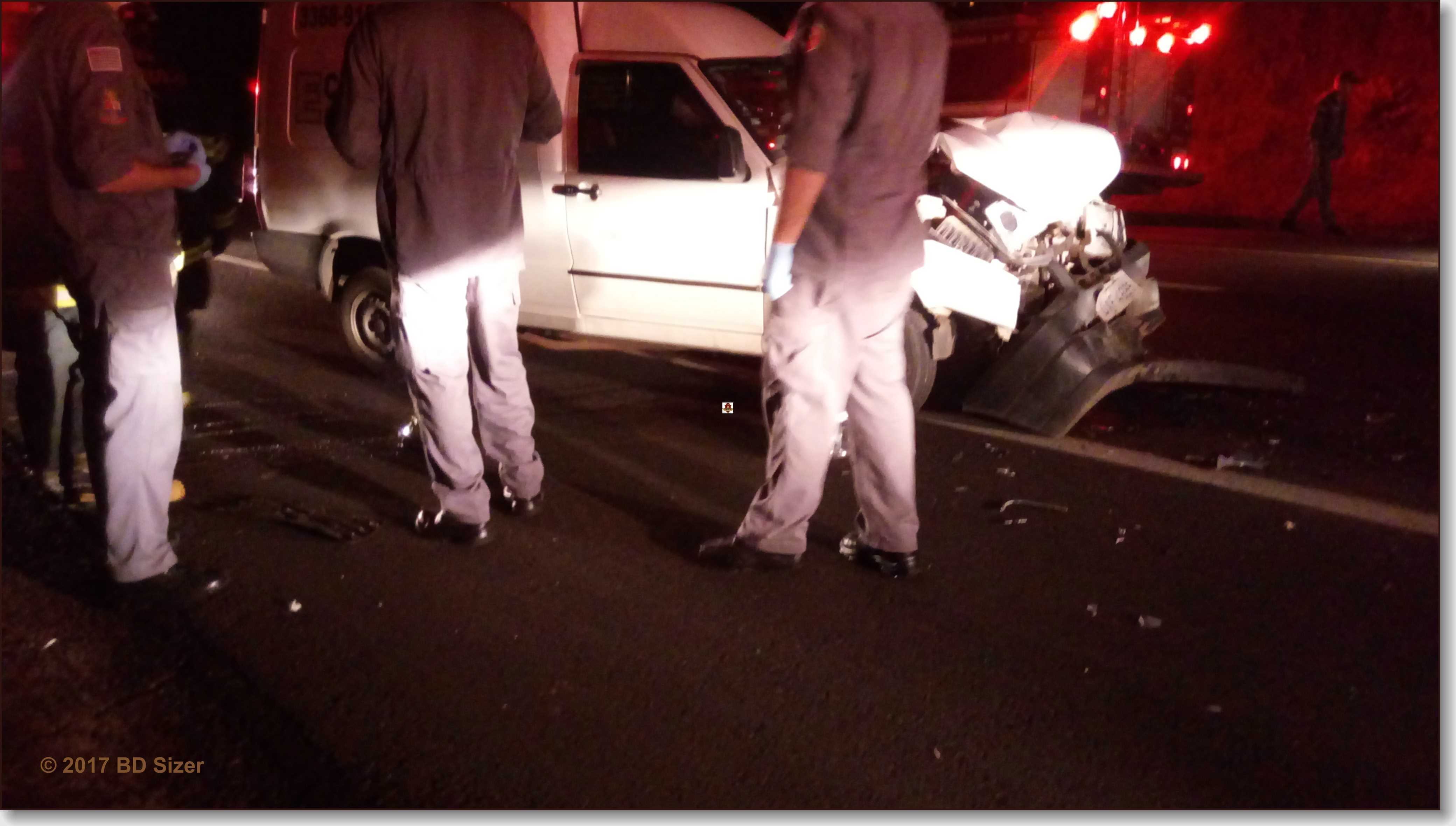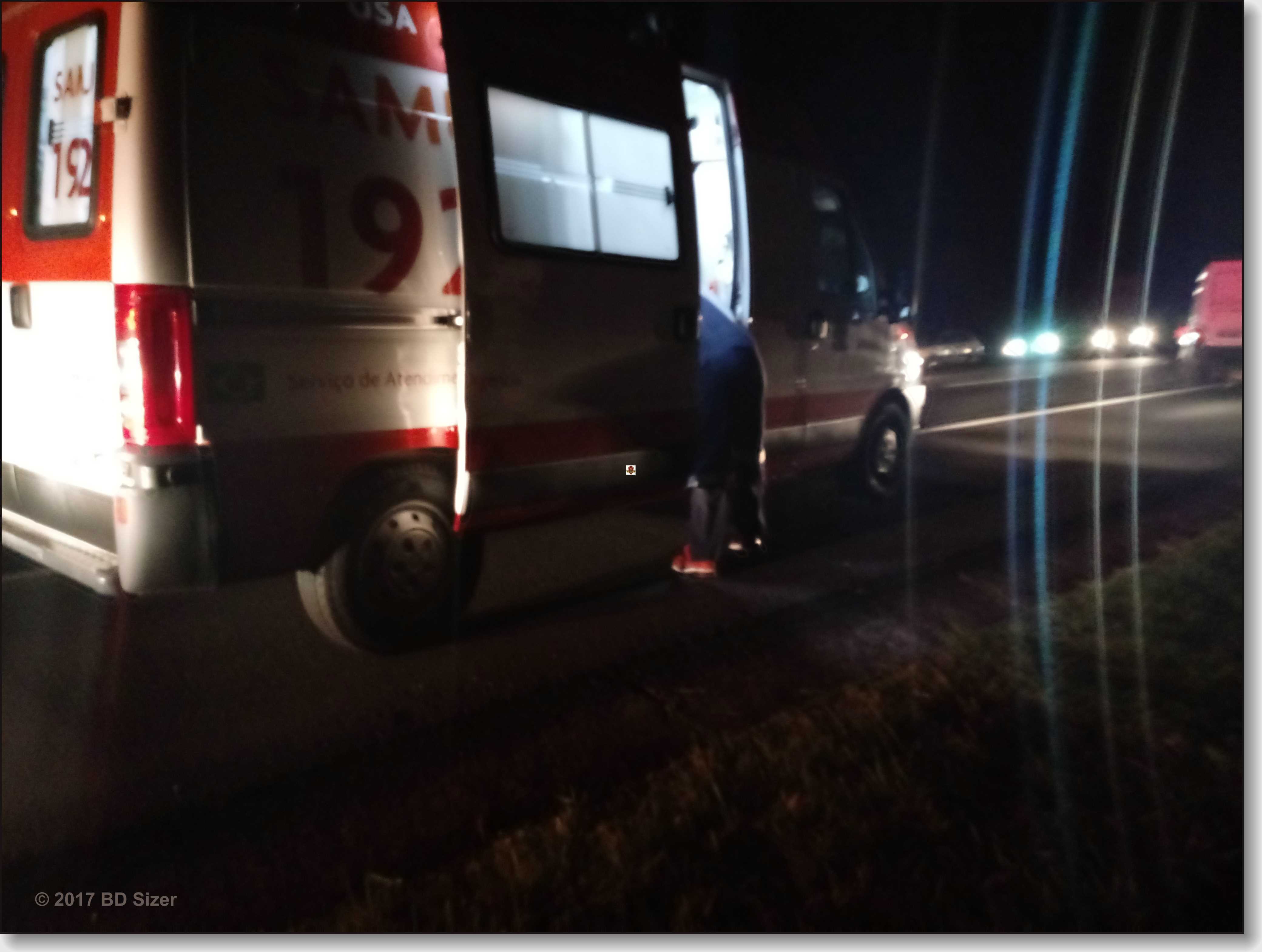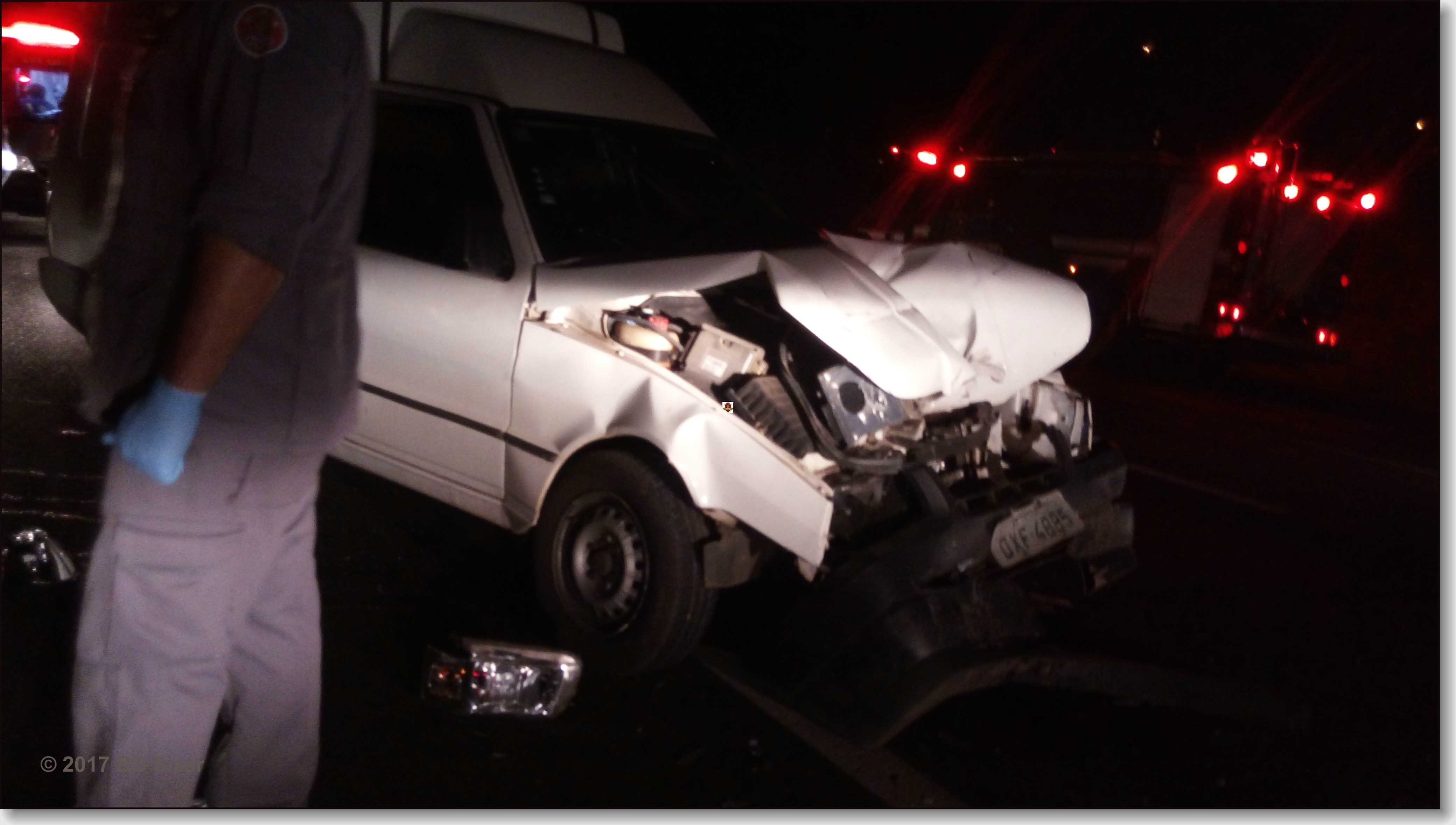 O SAMU socorreu um homem nesta noite de sábado, 16-12-2017, após o mesmo colidir seu carro na traseira de um caminhão na rodovia Tales Lorena Peixoto Junior (SP-318), região do Varjão, São Carlos-SP.
