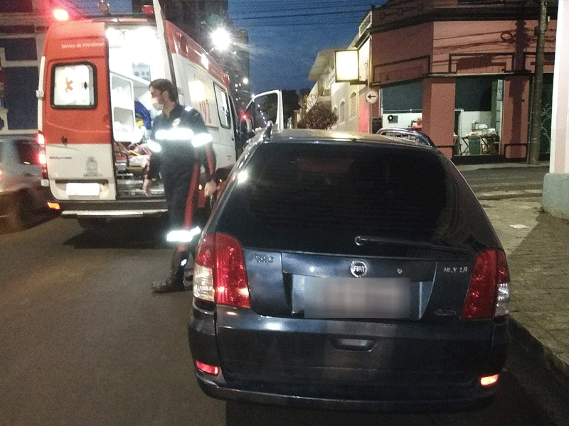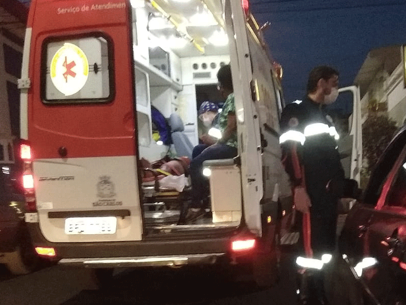 Uma mulher ficou ferida em um acidente de trânsito no início da noite desta quarta-feira, 25 de agosto de 2021, na Rua Rui Barbosa, cruzamento com a Rua Sete de Setembro, região central de São Carlos-SP.