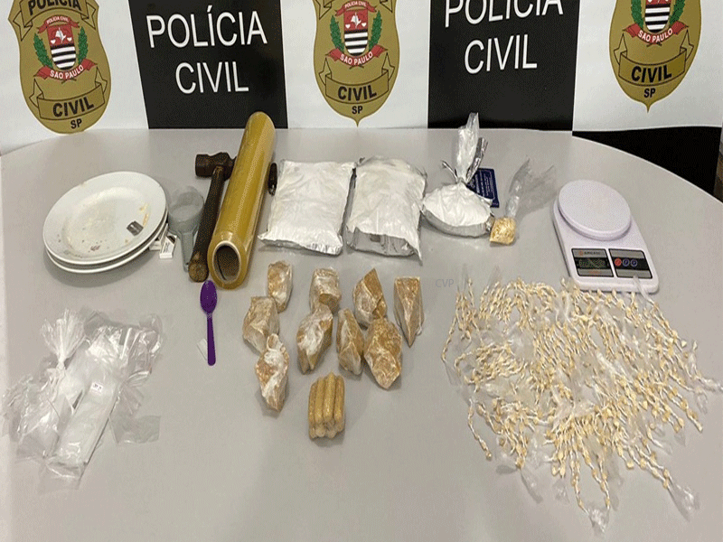 No total foram  apreendidos nove tabletes de crack, pesando aproximadamente cem gramas cada, bem como dois pratos contendo resquícios da mesma droga, várias lâminas de barbear, uma balança de precisão e diversos envoltos de plástico com as extremidades presas entre si, contendo ao total 598 pedras de crack já individualizadas para ato venda. Foi apreendido um total de 1,130 kg de crack e 1,251 kg de substância utilizada para a mistura do entorpecente. O total apreendido corresponde há cerca de 3.724 porções de crack. O detido teria confessado o delito. O mesmo foi encaminhado à DISE, autuado por tráfico de drogas e recolhido ao Centro de Triagem de São Carlos.