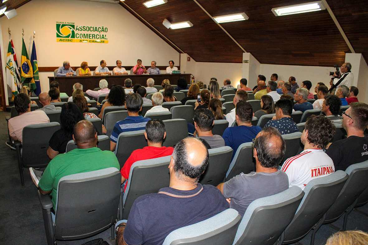 O presidente da ACISC, José Fernando Domingues, o Zelão, fala sobre o encontro. “Vimos o auditório cheio e com muita gente insatisfeita, cobrando obras emergenciais em calçadas para o simples trânsito de pedestres, sem que tenham que andar nas ruas, dividindo espaços com automóveis”, contou. “A gente vem solicitando da prefeitura agilidade e quais os planos que devem ser executados, porém, nunca se tem uma previsão”, afirmou.