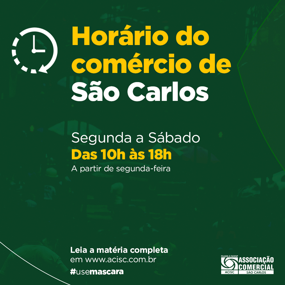 Ao lado do Sincomércio, o presidente da ACISC (Associação Comercial e Industrial de São Carlos), José Fernando Domingues, protocolou ofício na manhã desta sexta-feira, junto à Prefeitura de São Carlos, com a proposta de como deveria ficar o expediente para os setores do comércio em geral e serviços, a partir da próxima segunda-feira, 24. “Com o acréscimo de mais 2 horas no horário de funcionamento na fase em que estamos, propomos ao Comitê de Combate ao Coronavírus de São Carlos, que o comércio passe a funcionar das 10h às 18h, de segunda a sexta-feira, e aos sábados das 9h às 17h, a partir da próxima semana”, explicou Zelão.