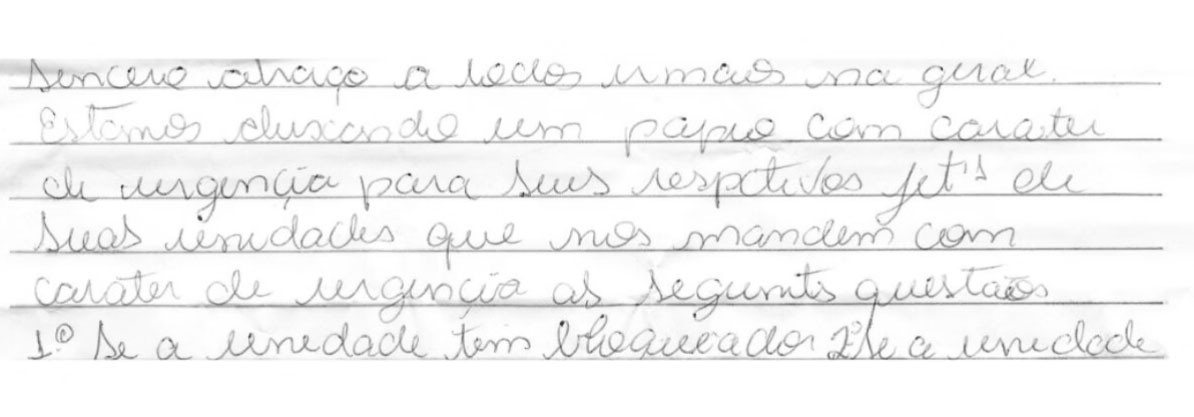 “Peço que convoquem e reúnam, presencialmente ou via remota, seus Cmts [comandantes] de OPMs [Organizações Policiais Militares] e SubUnidades para estabelecer as ações aplicáveis em suas respectivas áreas”. Segundo ele, não há até o momento informações de inteligência que confirmem a hipótese.
