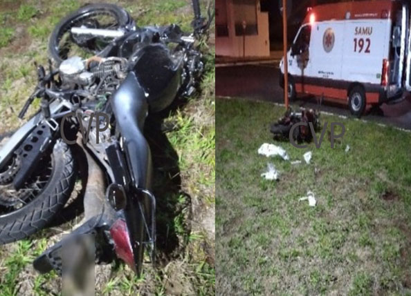 De acordo com informações, uma moto estava sendo conduzida por F.R.O, o qual tinha como passageira A.M.C, idade não informada, por motivos desconhecidos, o masculino perdeu o controle da direção, bateu na guia da calçada e o casal caiu. O masculino abandonou a moto e a mulher e fugiu do local. A.M.C, ficou gravemente ferida. Populares acionaram o SAMU e a Polícia Militar. A Unidade de Suporte Avançado (USA ) do SAMU esteve no local e socorreu a mulher para a Santa Casa, onde permaneceu internada. Uma senhora compareceu ao local do acidente e disse para os policiais, que o condutor da moto era seu filho e que ele havia telefonado para ela, avisando do fato, mas que ele havia sumido. A moto foi entregue para a genitora do indivíduo.