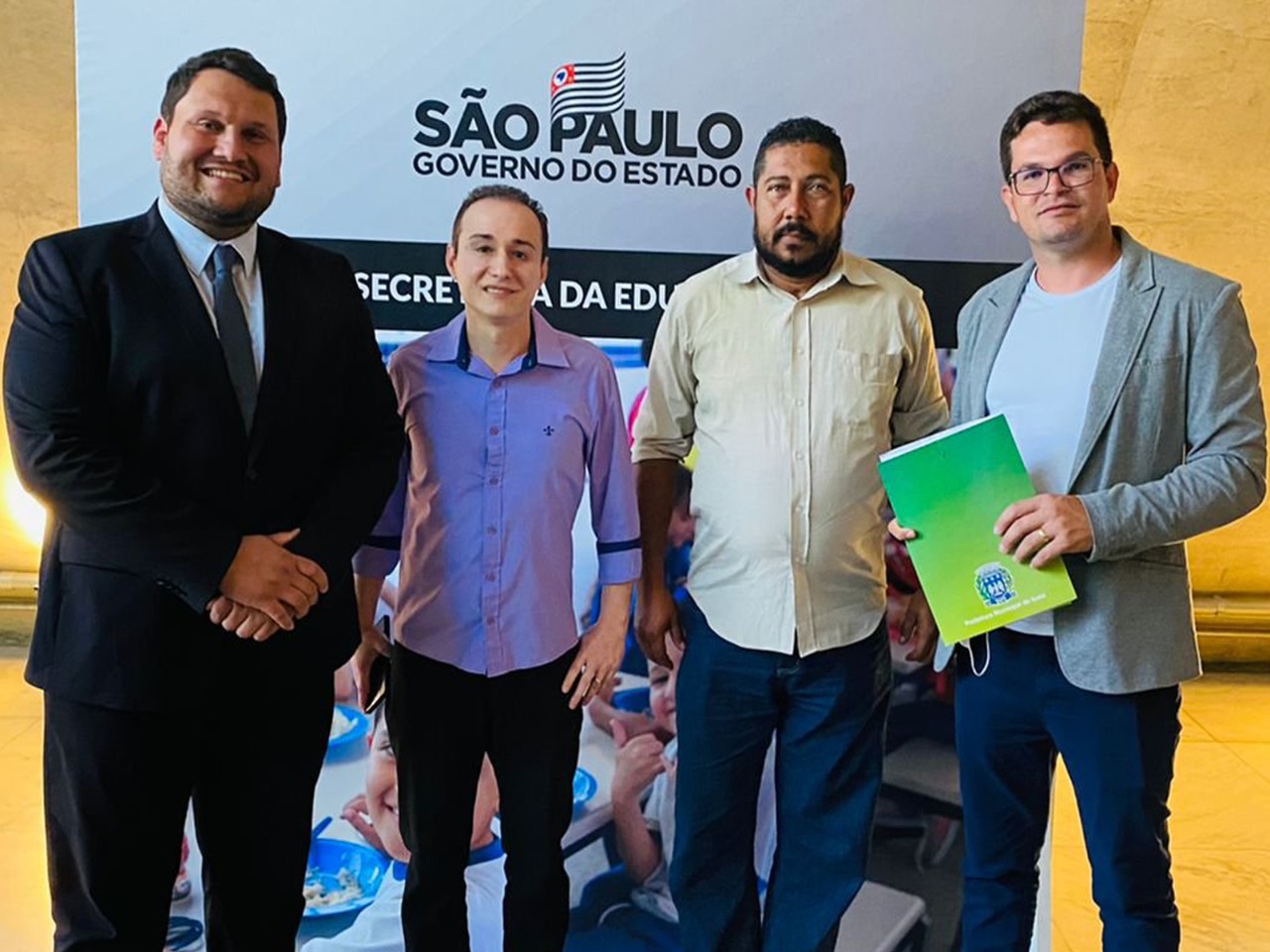 Os secretários municipais, Édison Fernando da Silva (Governo) e Alexandre Moraes Gaspar (Educação e Cultura), bem como, o chefe de Divisão de Esportes, Raul Seixas II Betune Pereira, representaram o prefeito municipal José Luiz Parella, na solenidade de entrega oficial do veículo.