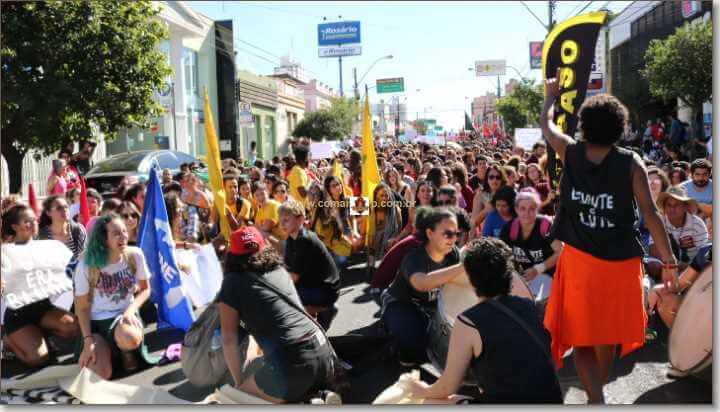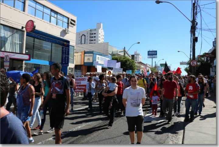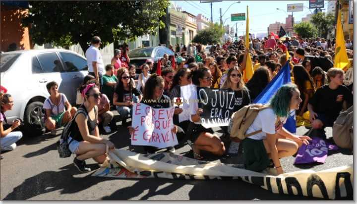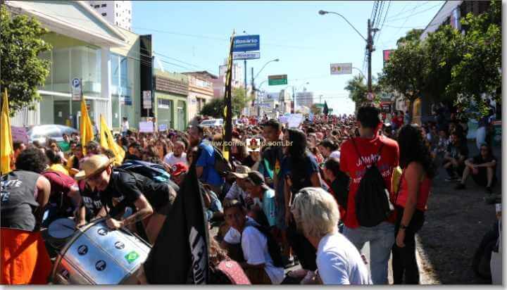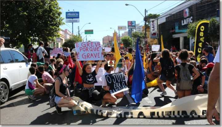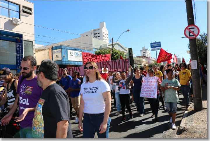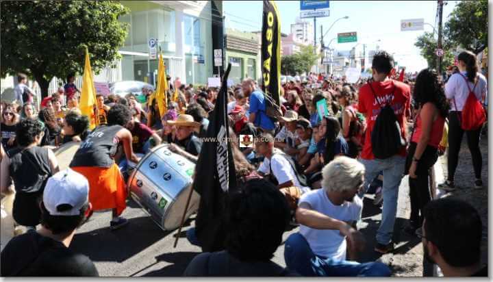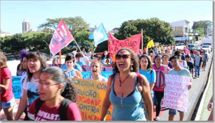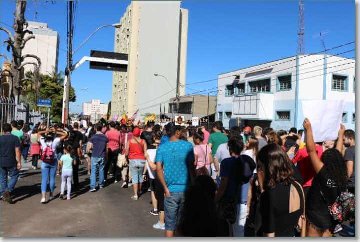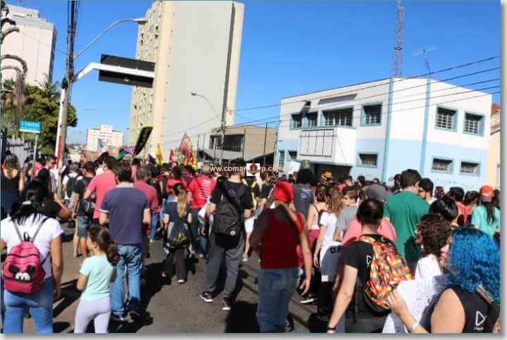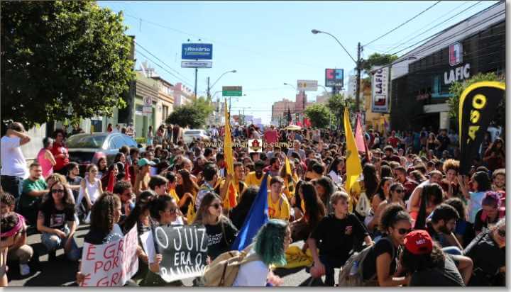 Estudantes, professores e população em geral foram para as ruas e pediram a cabeça do presidente Jair Bolsonaro. O motivo, é a reformar na Previdência e o corte na educação. Estudantes da USP e UFSCar se juntaram no Terminal Rodoviário e subiram a avenida São Carlos, sentido ao Mercado Municipal. A PM , Guarda Municipal e os amarelinhos controlaram o transito e interditaram parte da referida avenida. E assim os manifestantes seguiram com seus gritos de guerra.
