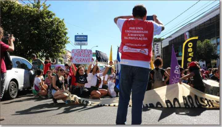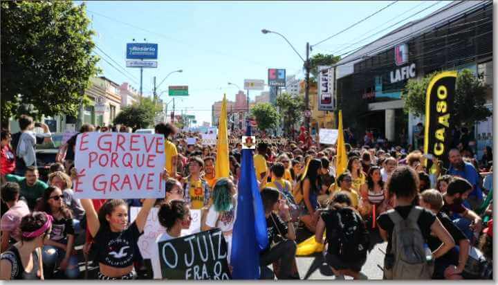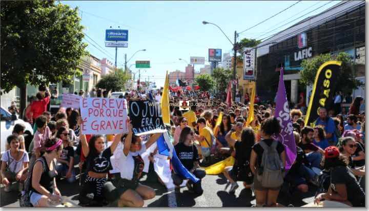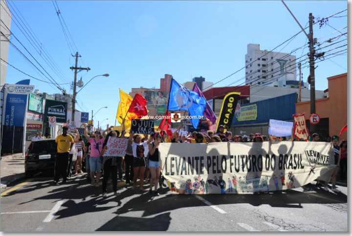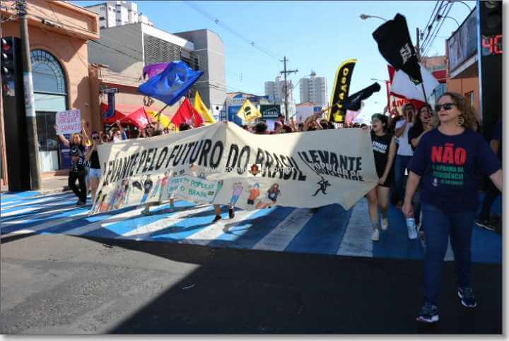 Nesta manhã de sexta-feira, 14 de junho de 2019, manifestantes foram as ruas do Brasil para lutar pelos seus diretos. EM São Carlos-SP, não podia ser diferente.