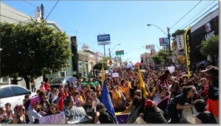 Perto da escola Álvaro Guião eles fizeram um “tapete” humano. Não foi divulgado o numero de manifestante, mas estima-se em três mil.