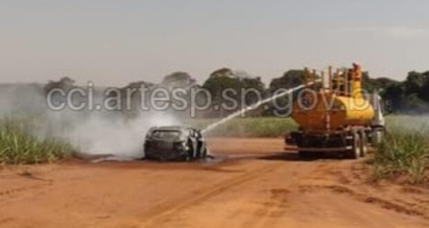 Um corpo carbonizado foi encontrado no começo da tarde desta segunda-feira, 25 de agosto de 2025, dentro de um carro incendiado em um canavial na rodovia Brigadeiro Faria Lima, em Jaboticabal-SP.