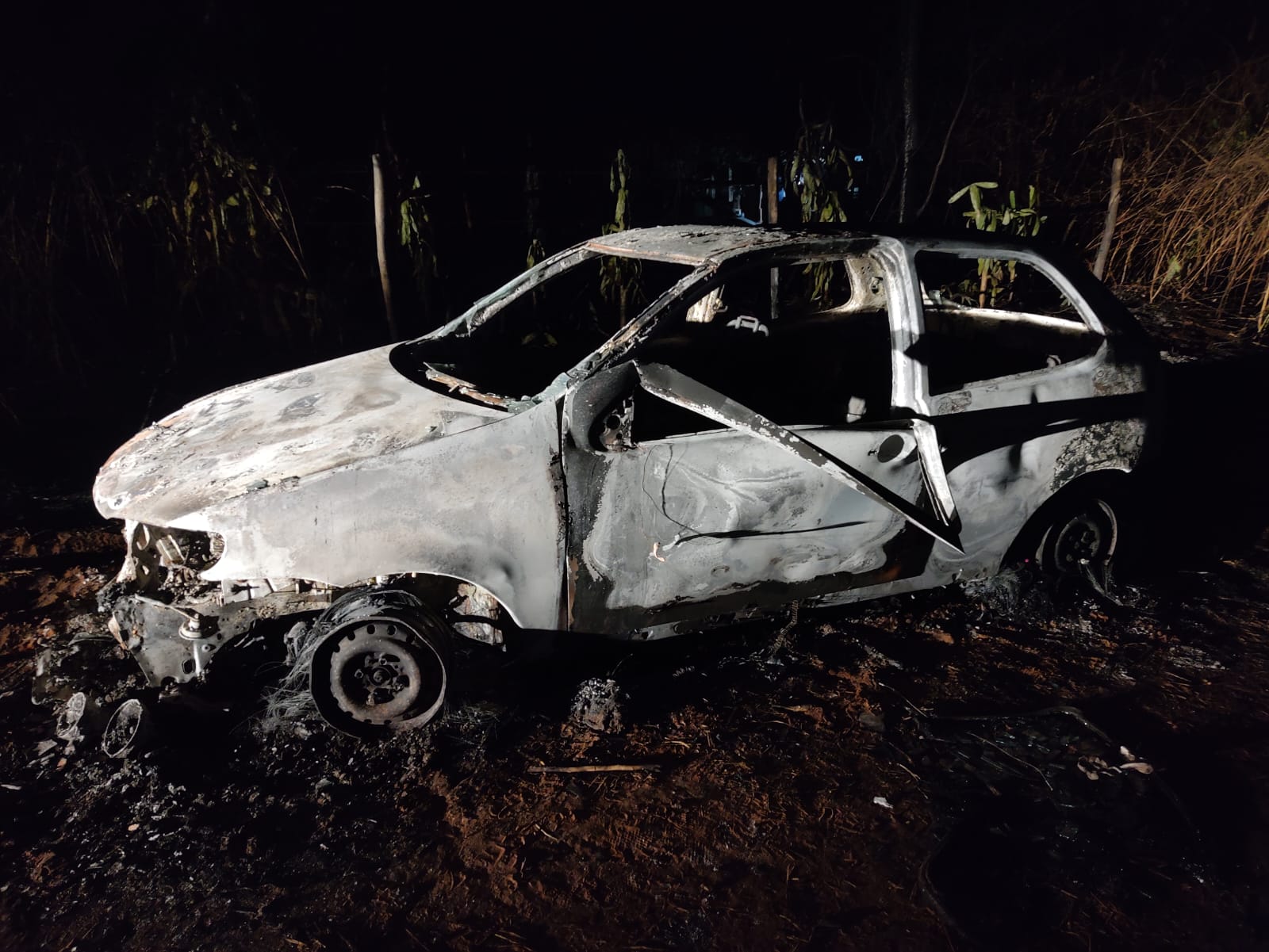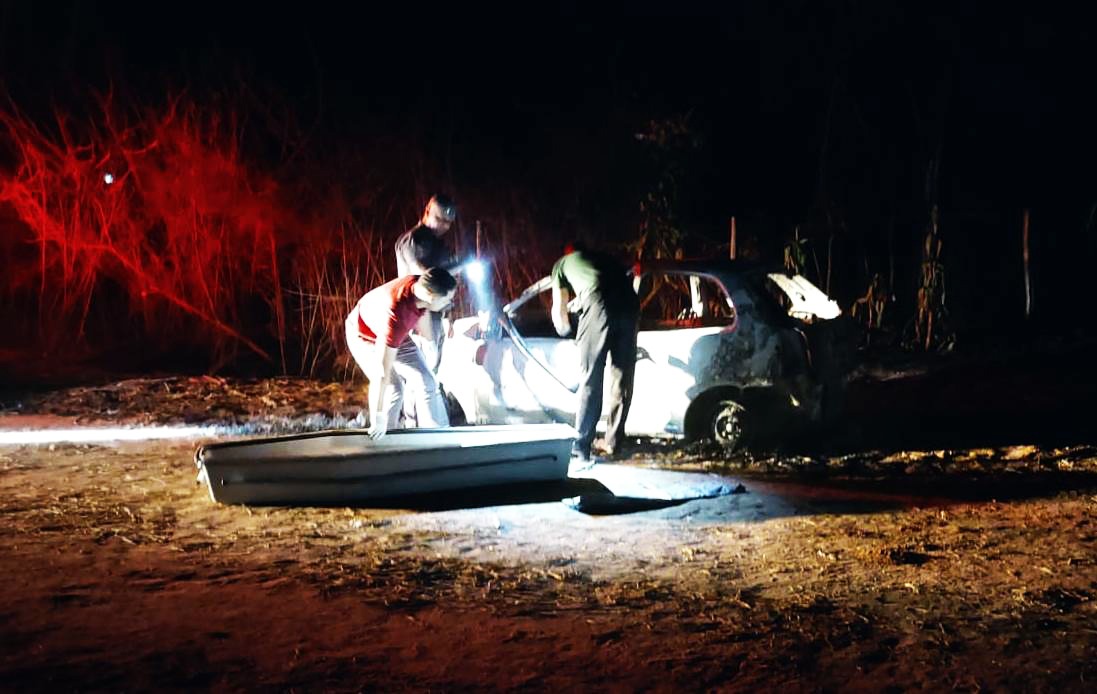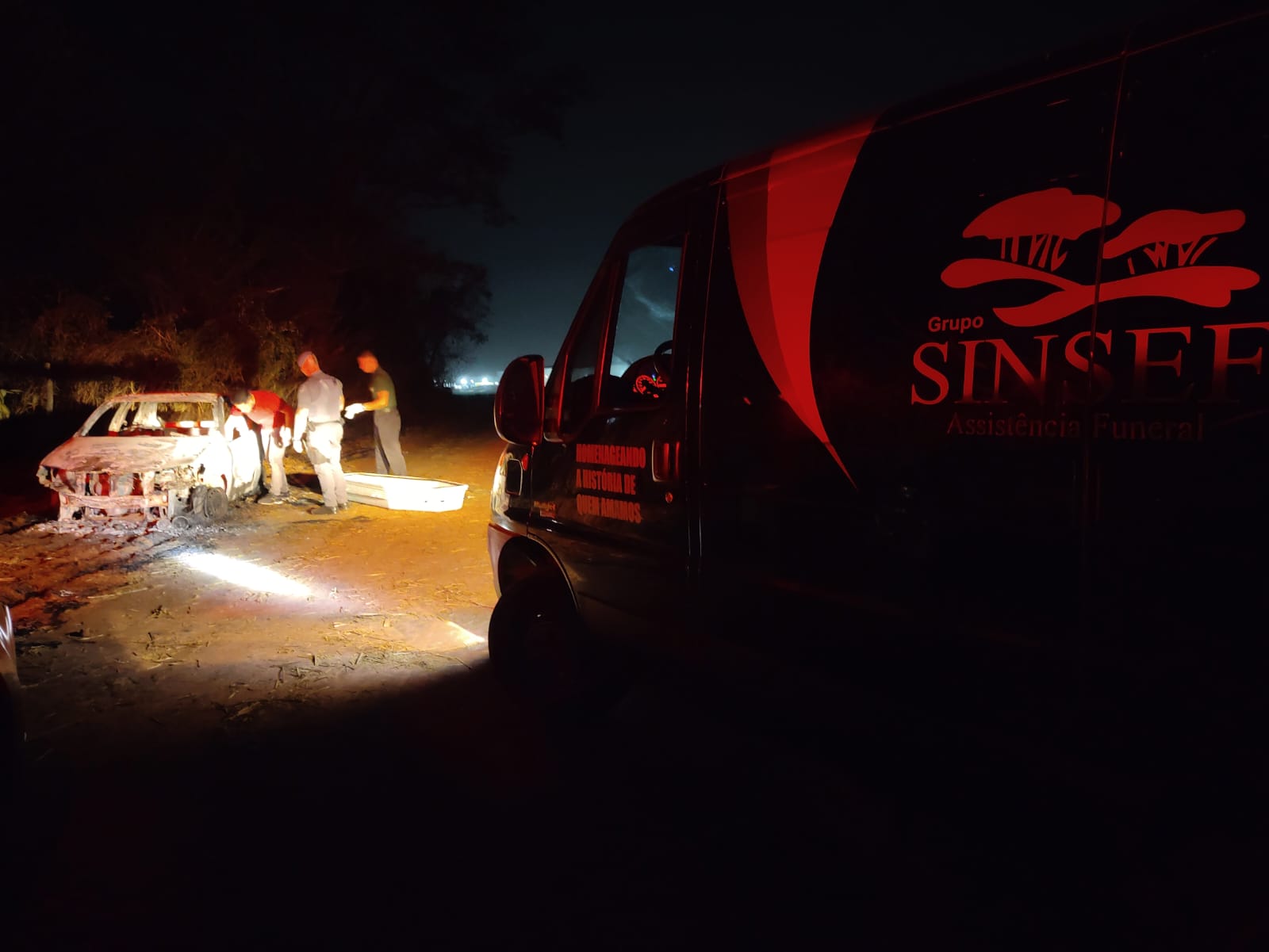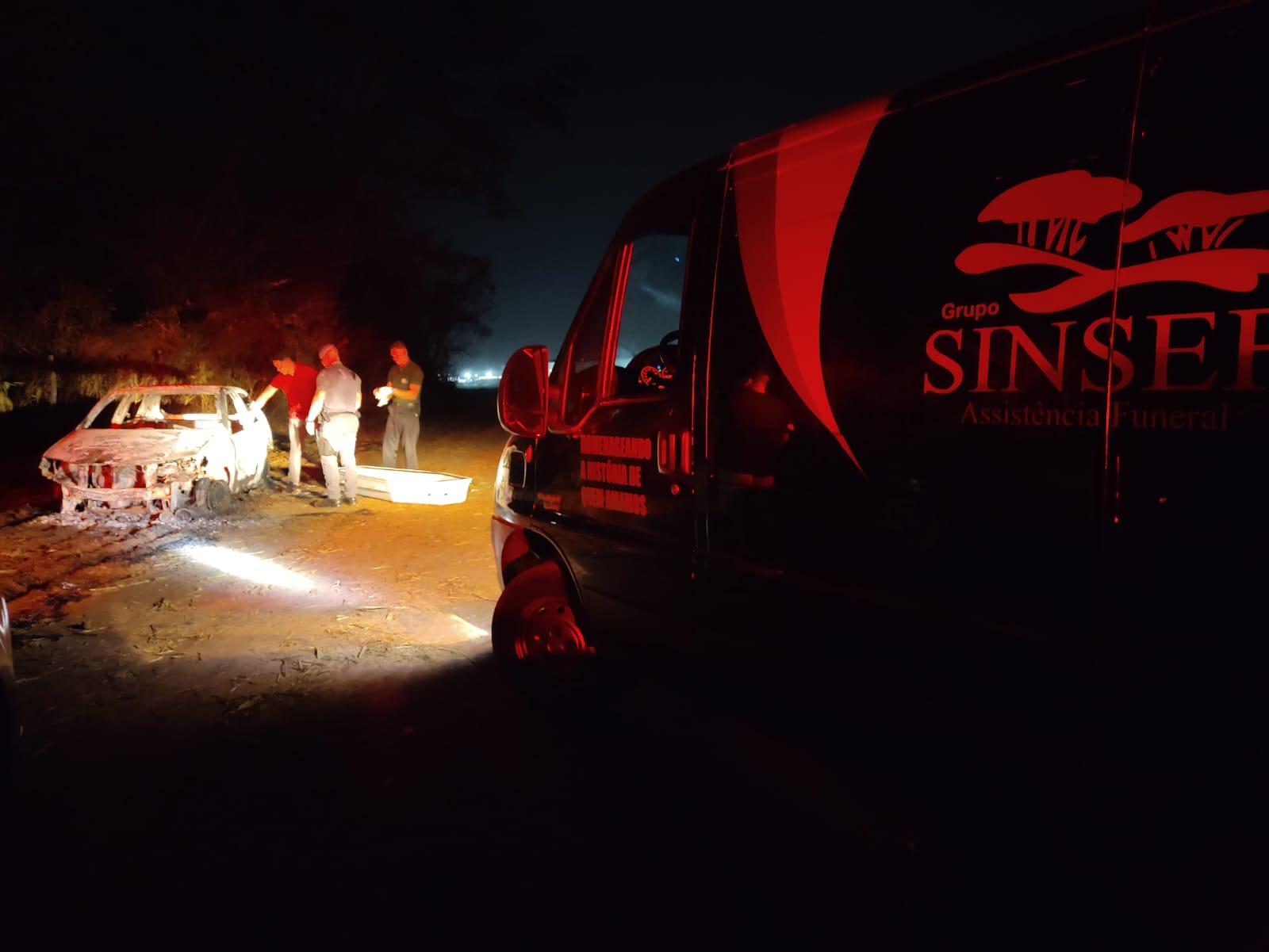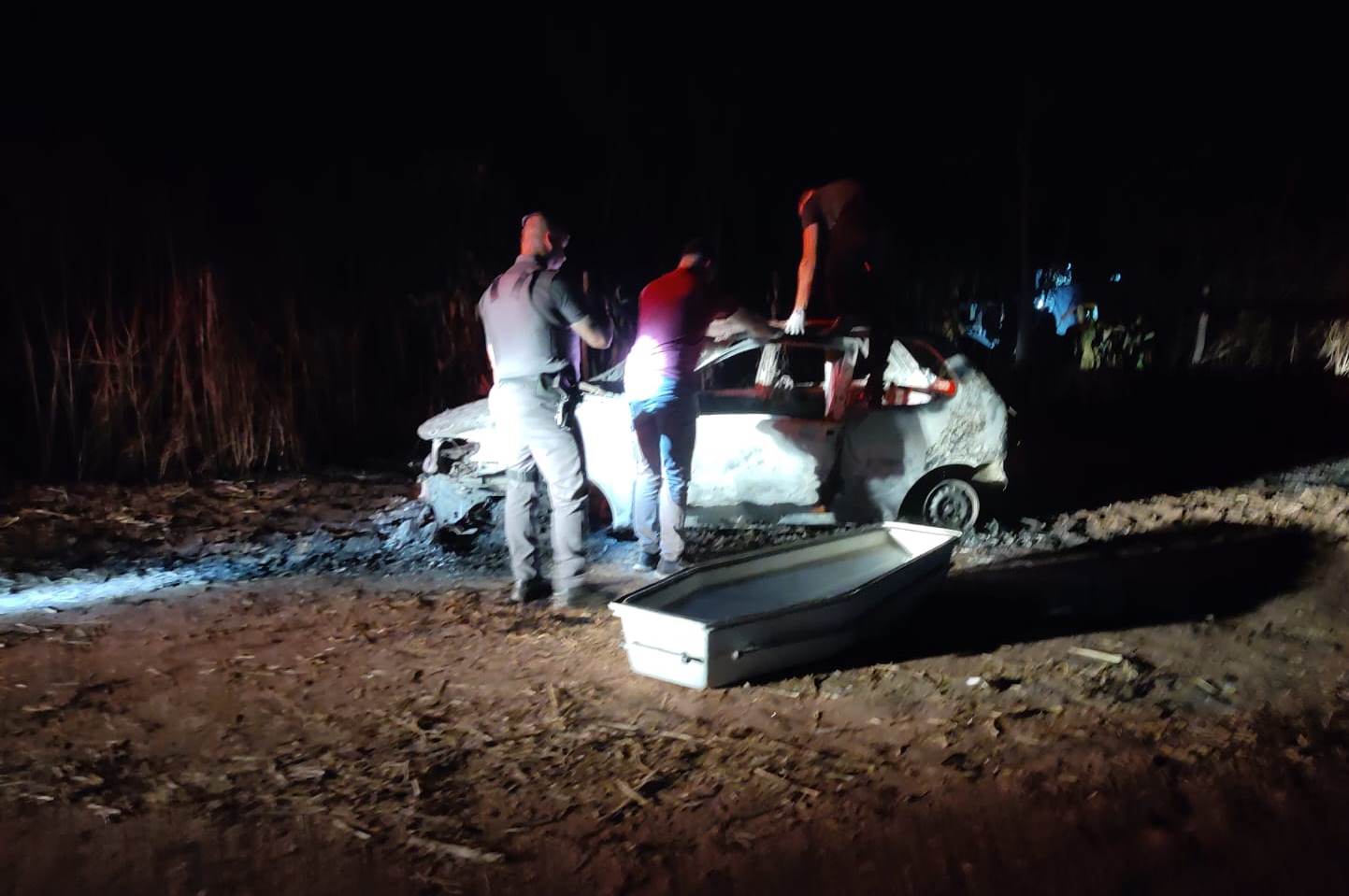 O fogo foi contido, mas o veículo já estava completamente destruído. Dentro do carro foi encontrado um corpo totalmente carbonizado.