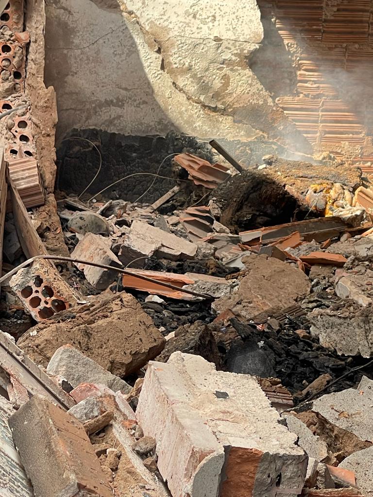 A Defesa Civil esteve presente para analisar se há risco da casa cair.