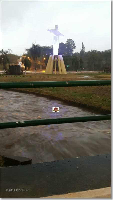 Fim desta tarde de sábado, 30 de setembro de 2017, a forte chuva deixou a região da rotatória do Cristo, São Carlos-SP ( no córrego Monjolinho) na Avenida Francisco Pereira Lopes em sinal de alerta.