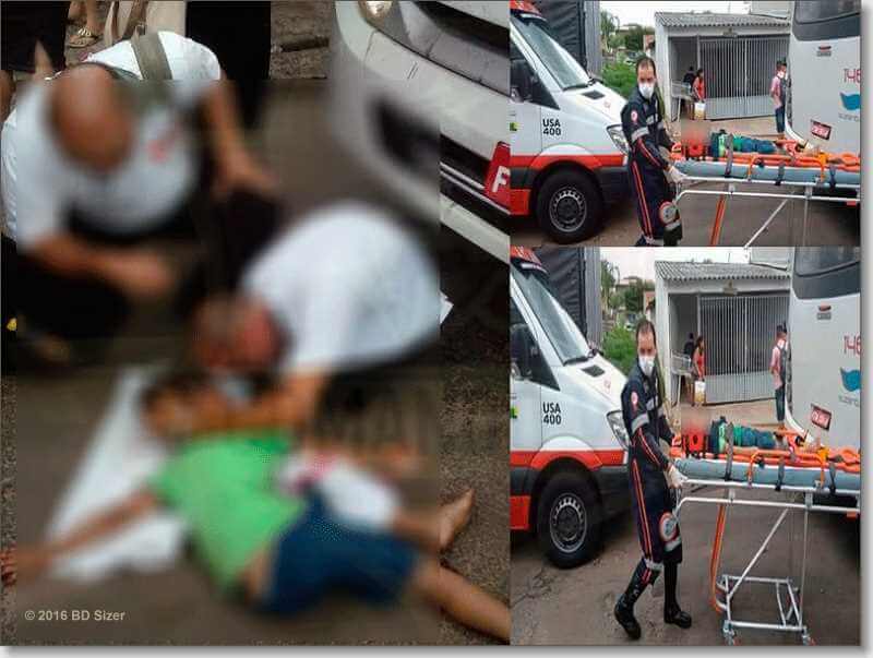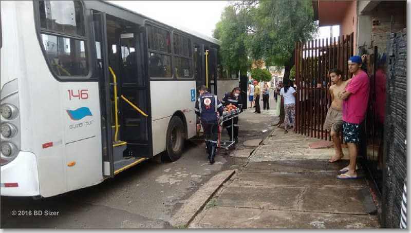Um garotinho de cinco anos foi socorrido pela Unidade de Suporte Avançado (USA) do SAMU nesta tarde de quarta-feira 02-11-2016, e internado na Santa Casa de Misericórdia, após ser atropelado por um ônibus da SUZANTUR na rua Basílio Joaquim (antiga rua  Doze ) do bairro Cidade Aracy , São Carlos-SP.
