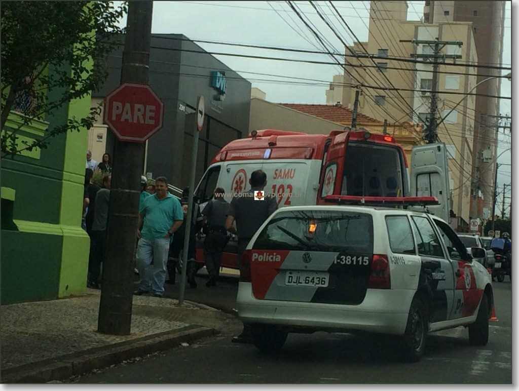 Uma criança de 10 anos foi socorrida pelo SAMU após ter sido atropelada por uma moto na rua São Joaquim, cruzamento da rua Marechal Deodoro. Centro de São Carlos-SP. O fato aconteceu nesta manhã de quarta-feira, 7 de novembro de 2018.