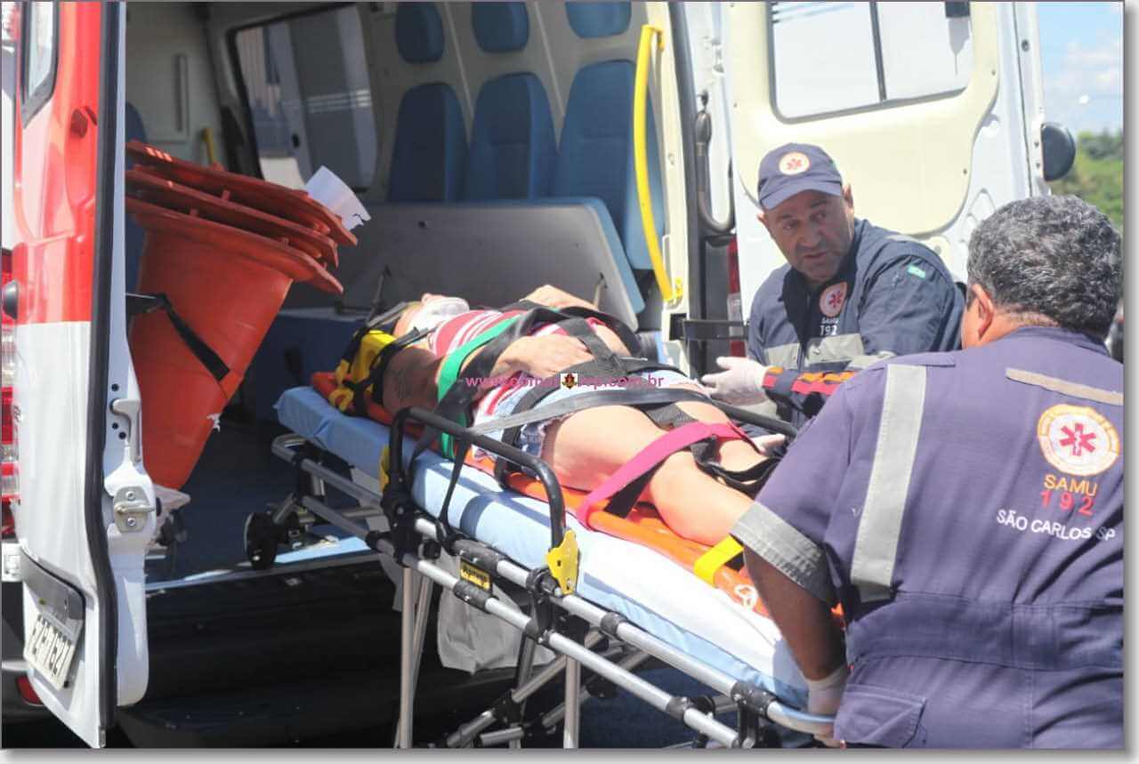 Duas mulheres e uma criança ficaram feridas em um acidente entre carro e moto ocorrido nesta manhã de terça-feira, 10 de março de 2020, na Rua Monteiro Lobato, cruzamento com a Rua Rua Walter de Camargo Schutzer, bairro Vila Nery, São Carlos-SP.