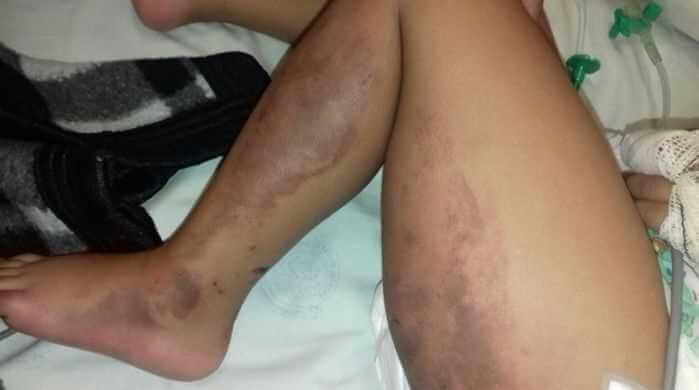 A menina apresentava queimaduras por todo corpo, hematomas na cabeça, marcas de mordida e arranhões. Marília informou à polícia que o namorado dela, Fabio Anacleto, de 25 anos, havia cuidado da criança durante o dia enquanto ela trabalhava. O médico viu que as marcam eram de agressão e acionou a PM. O pai da menor um policial militar esteve no hospital e disse que vai tentar conseguir a guarda da filha.