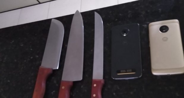 Foram apreendias 3 facas, maconha e o carro. O jovem de 20 anos foi encaminhado ao Plantão Policial, qualificado e liberado. O carro foi recolhido ao Pátio Municipal. As arma branca e a droga foram apreendidas.