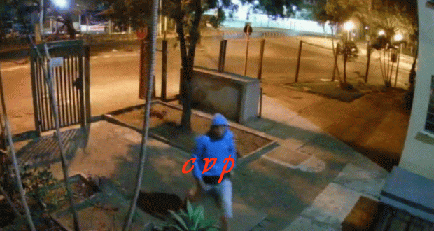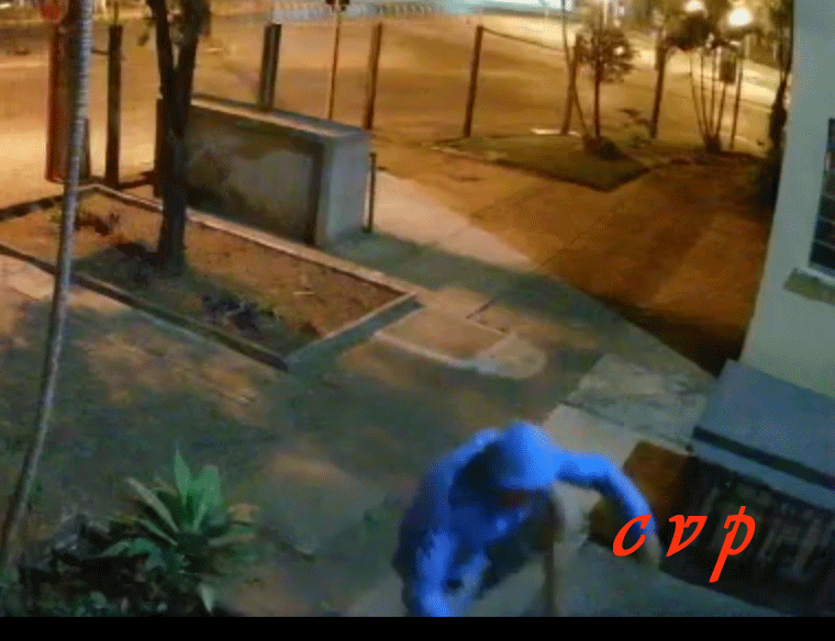 Segundo informações, a câmera foi colocado no local há poucos dias, mas os desocupados se sentiram incomodados e um resolveu furtar o objeto. Nas imagens é possível ver o sujeito arrombando o portão a chutes. Depois vai até a câmera e pratica o delito.