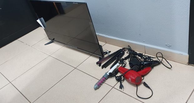 Segundo informações, A. L. B (42 anos) e M. R. S. (29 anos), usando um pé de cabra arrombaram a porta da loja e furtaram uma TV 40′, 02 chapinhas, 02 secadores de cabelo e 01 babyliss.