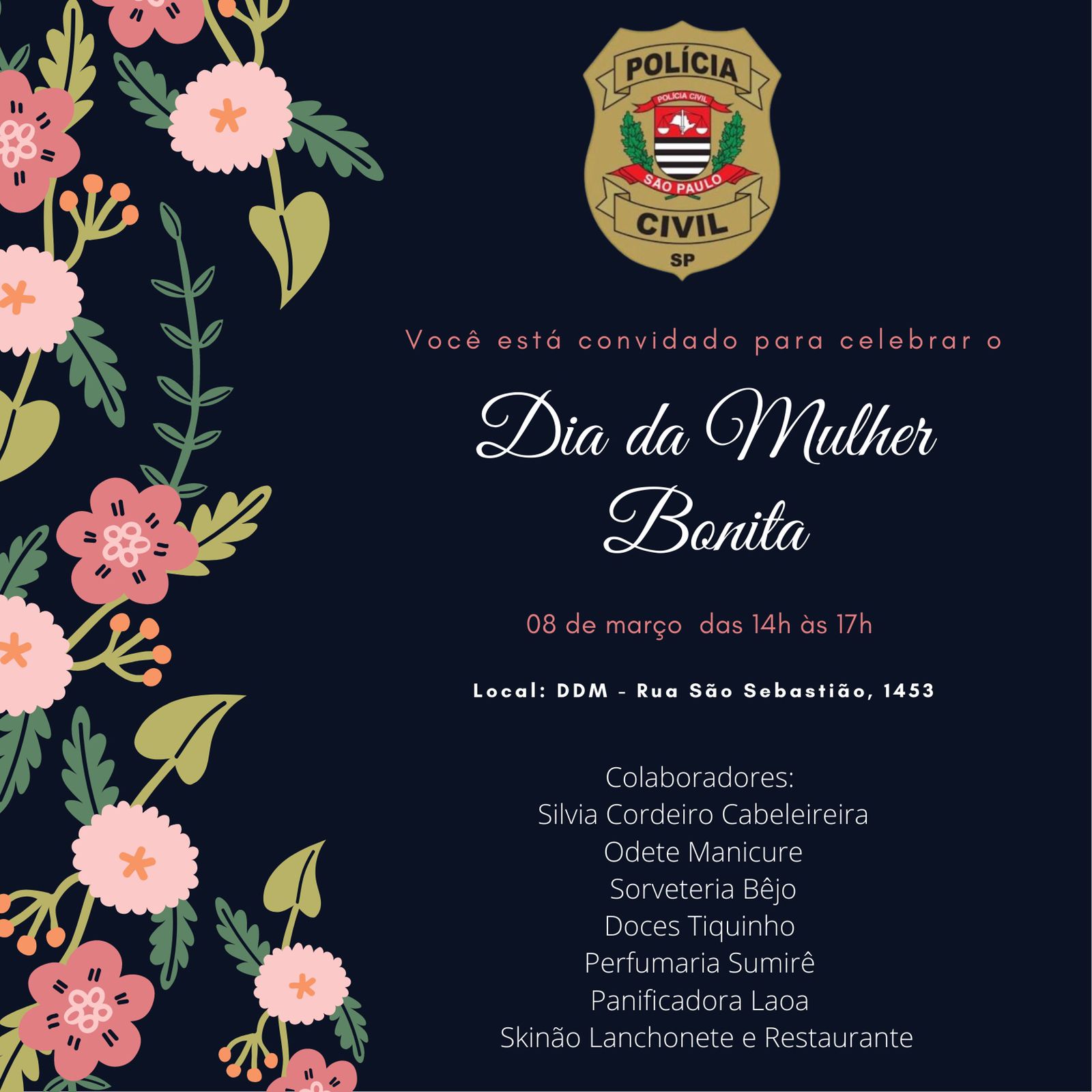 A Polícia Civil, através da Delegacia de Polícia de Defesa da Mulher , homenageará as mulheres no Dia Internacional da Mulher, realizando o Dia da Mulher Bonita .