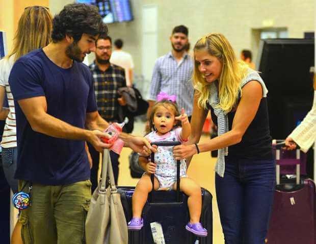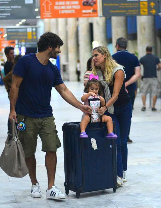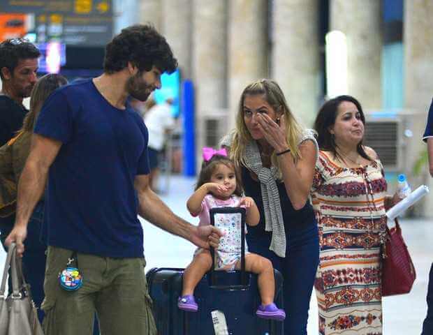 Depois de quase uma semana fora de casa, Deborah Secco reencontrou o marido e a filha. A atriz desembarcou no Rio de Janeiro vinda de Salvador nesse domingo (14-05-2017) e se emocionou ao ver a filha, Maria Flor, e o marido, Hugo Moura.