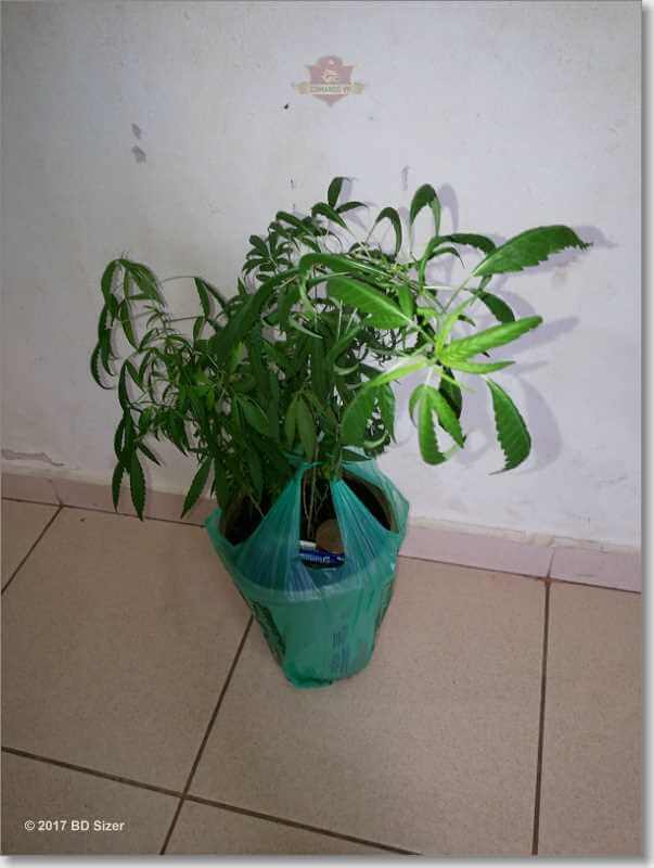 Segundo informações, M. G é moradora no condomínio 2, bloco 2. Ela acredita que foi denunciada pelo ex-namorado. Disse que há sete meses plantou a maconha. Ela foi encaminhada ao Plantão Policial, onde foi registrado boletim de porte entorpecente e liberada. Vale a pena ressaltar que a maconha ainda não foi liberada do Brasil.