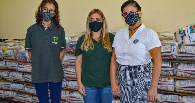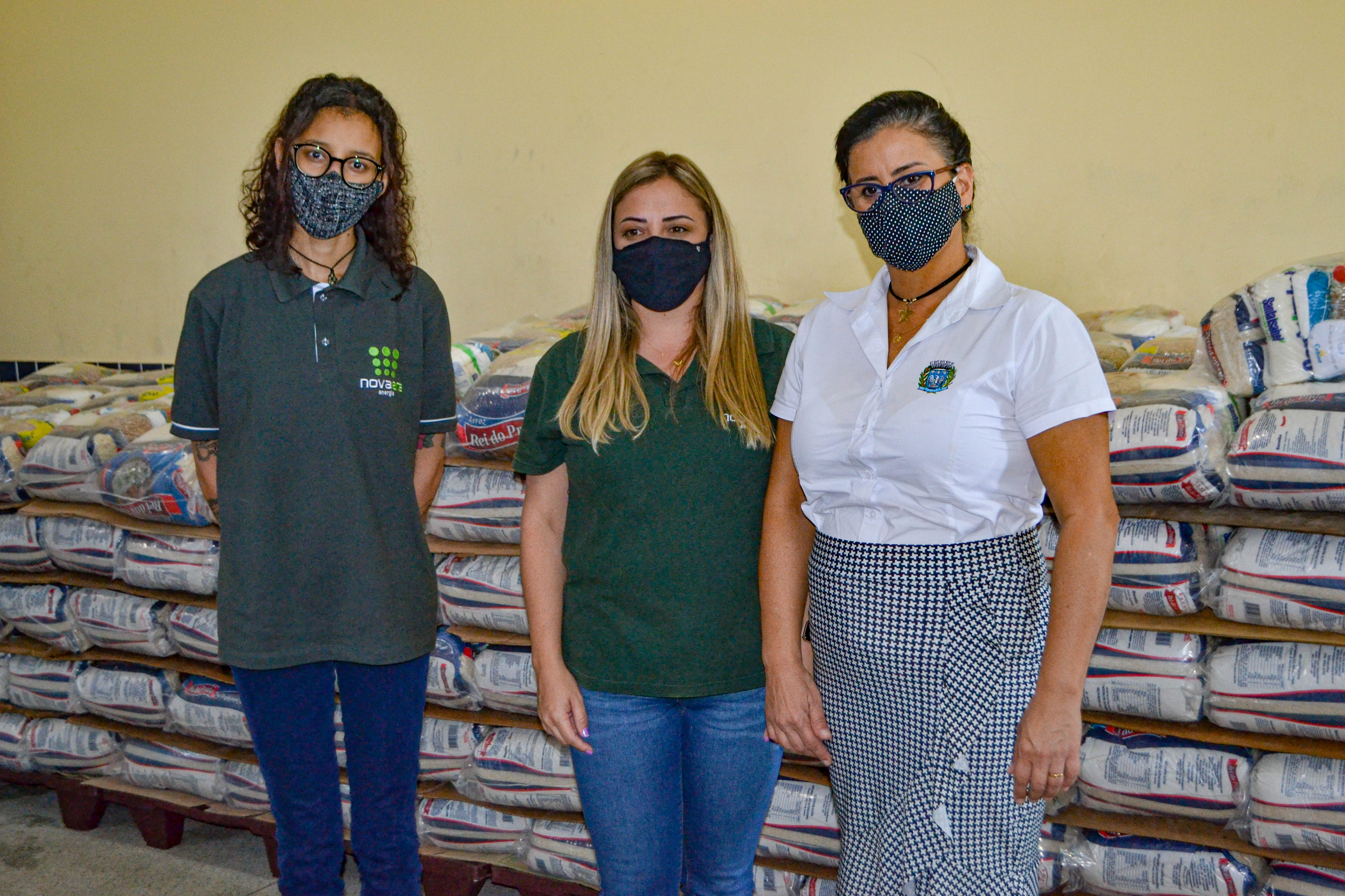 Acompanhou a entrega das cestas básicas, a responsável pela Secretaria Municipal de Assistência Social, Adriana Adegas Martinelli, e os representantes da Nova Era, Gislaine Rios (Recursos Humanos) e Gleiciane Amaral (Analista de Marketing Digital).