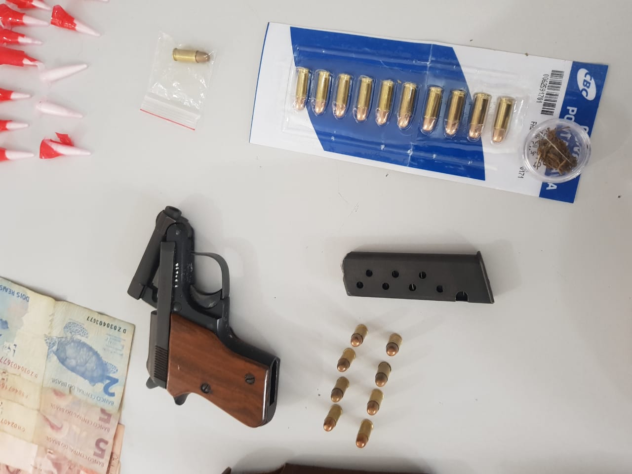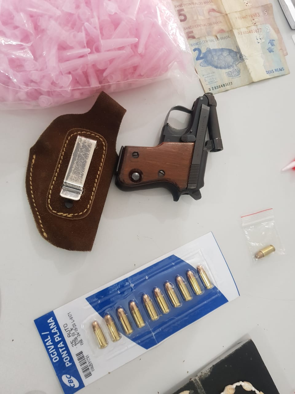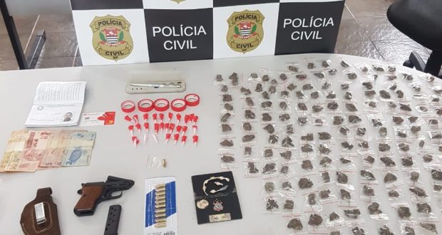 Segundo informações, a equipe do delegado, dr. Gilberto de Aquino está investindo um rapaz de 19 anos , o qual é suspeito de praticar alguns roubos nesta comarca. No quarto do suspeito foi localizado uma arma de fogo e drogas. O suspeito não estava na casa. Todo o material apreendido foi encaminhado à DIG.