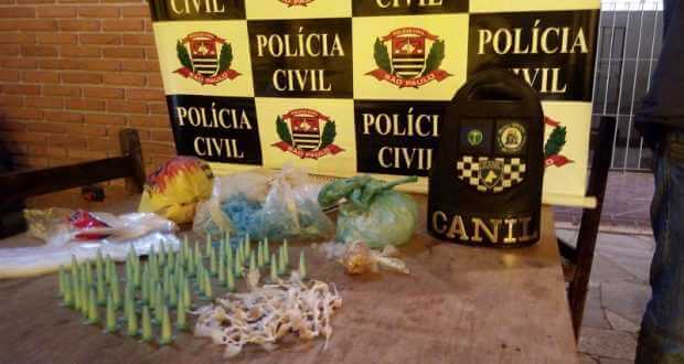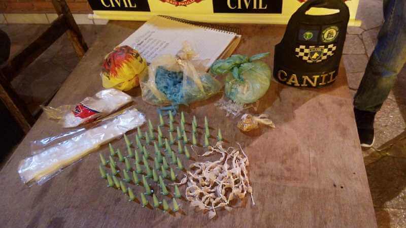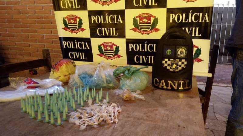 Policiais da Delegacia de Investigações  Sobre Entorpecentes (DISE)  com apoio do Canil da Guarda Municipal foram cumprir  um mandado de busca e apreensão nesta tarde de sexta-feira,23-06-2017,  na rua Nações Unidas, bairro Costa do Sol, São Carlos-SP onde localizaram drogas escondidas no quintal da  casa de um rapaz que já está preso.