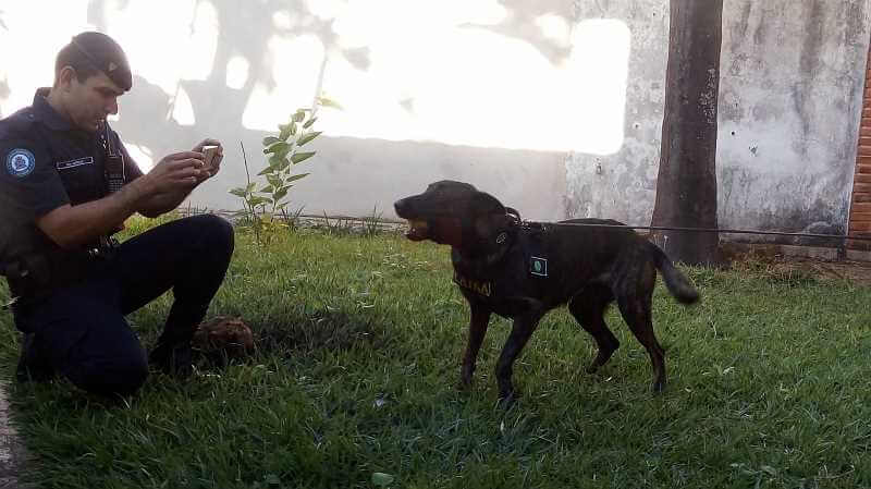 DISE e Canil da GM localizam drogas em quintal de casa de tráficante